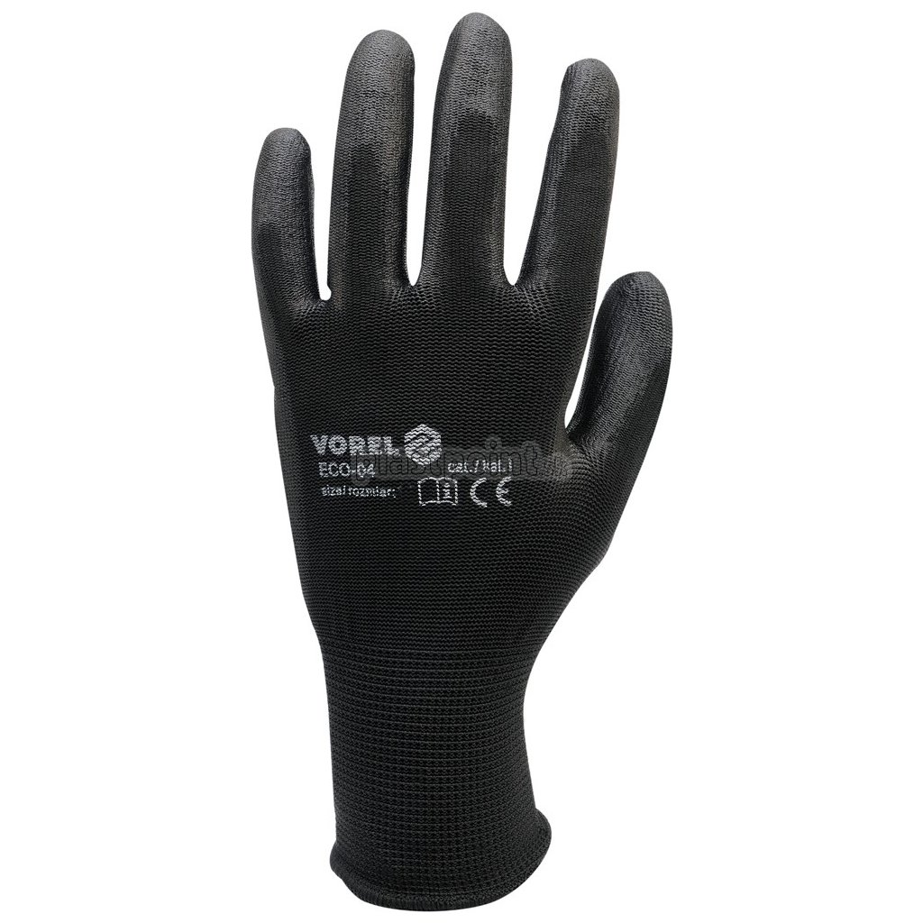 Rukavice sú zhotovené z polyesteru (steh 13) potiahnutého polyuretánom a zakončené odolným lemom.