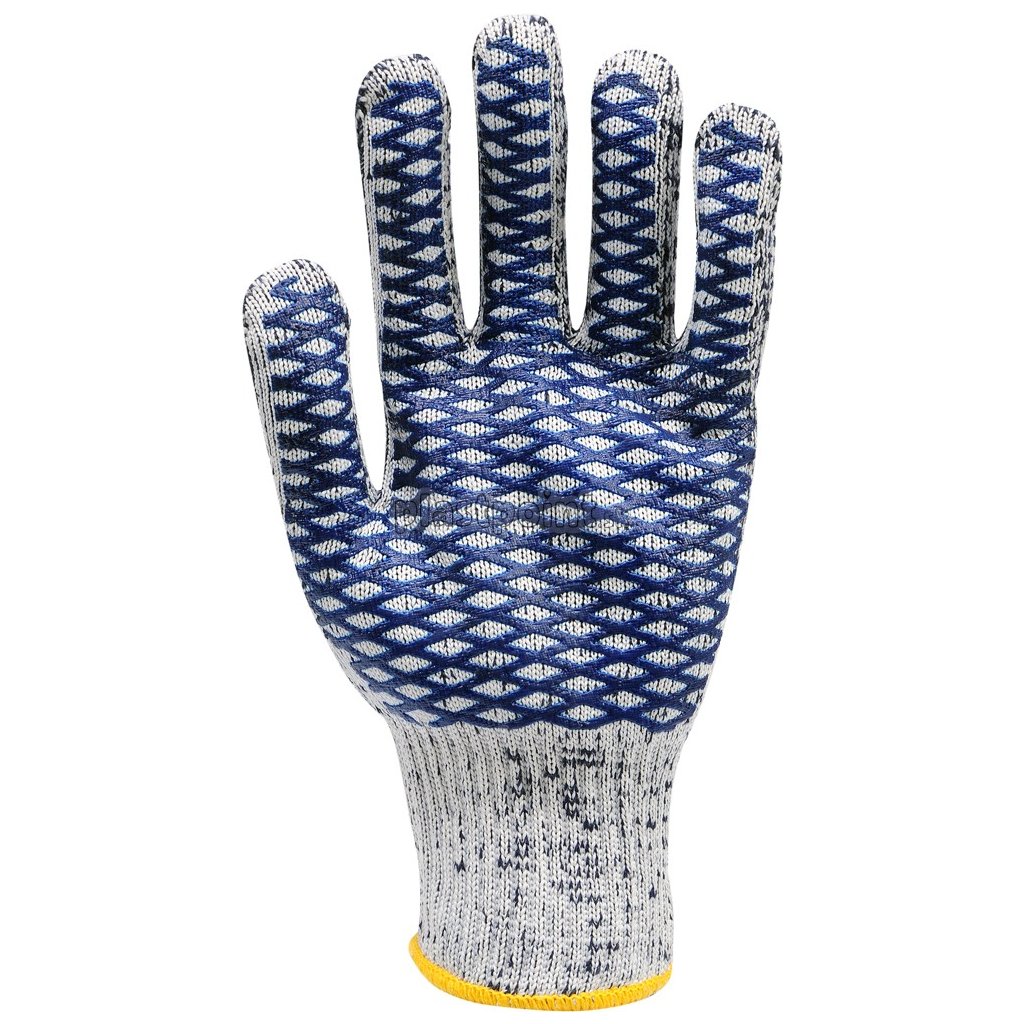 Rukavice sú zhotovené z bavlny a PVC mriežkovaného poťahu celej dlaňovej časti a spodnej časti prstov, rukavice sú zakončené lemom a sú odolné proti oderu.