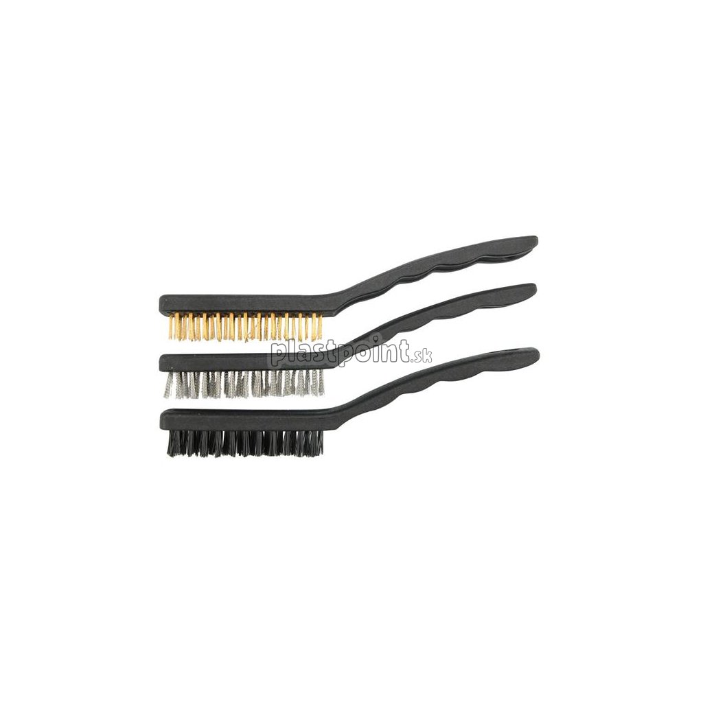 Sada troch rôznych drôtených kief so stredne jemnou štruktúrou vlasu. Sada obsahuje kefu s vlasom mosadzným, vlasom z nerezovej ocele a vlasom z nylonu. Kefy sa hodia na práce, kde je vyžadovaný určitý cit, napríklad na čistenie zapaľovacích sviečok, alebo iných kontaktov a na podobné práce. 18mm