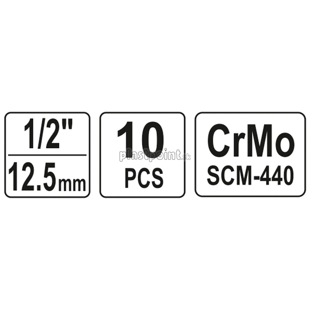 Sada nástavcov 1/2" rázové šesťhranné 10 ks 10-22 mm CrMo