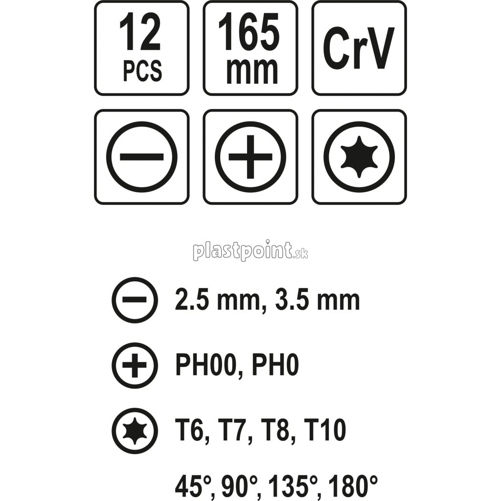 Sada 12 ks skrutkovačov a hákov určených pre jemnú mechaniku a demontáž drobných súčastí zariadenia.