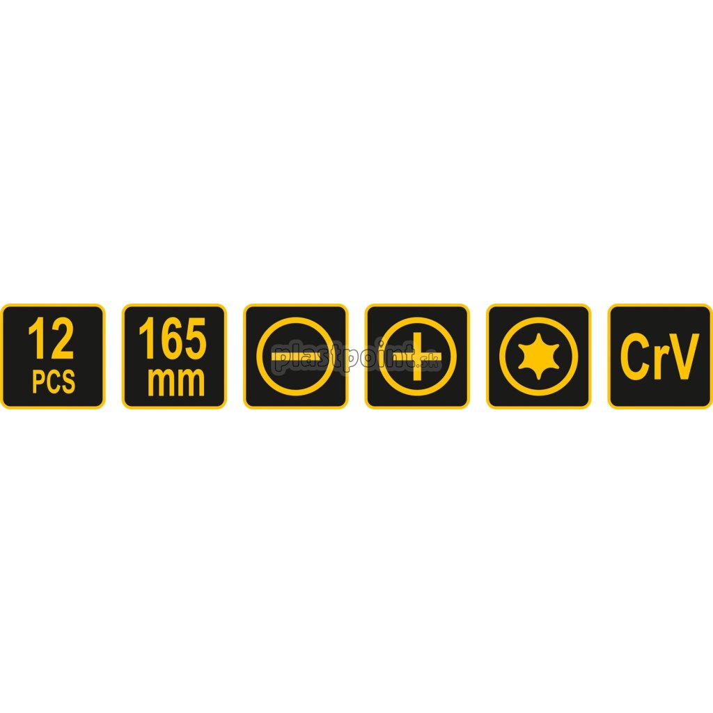 Nástroje dĺžky 165 mm sú zhotovené z CrV ocele, s ergonomicky tvarovanými rukoväťami z dvojzložkového plastu.