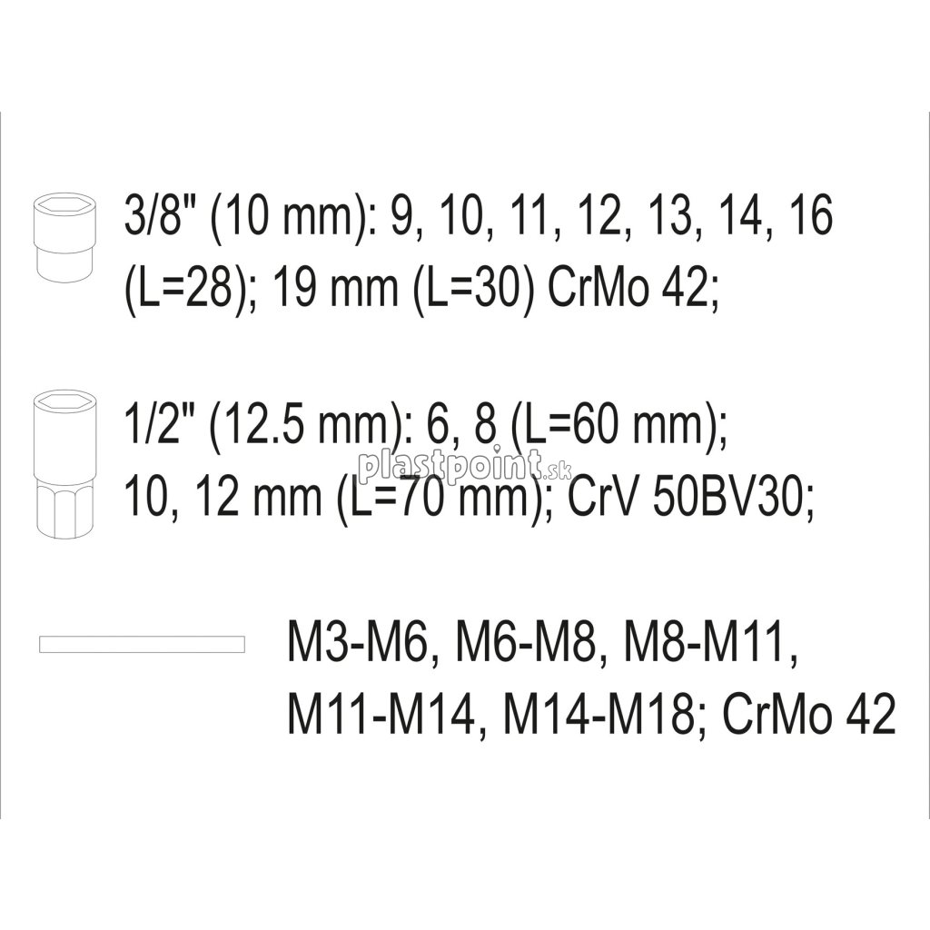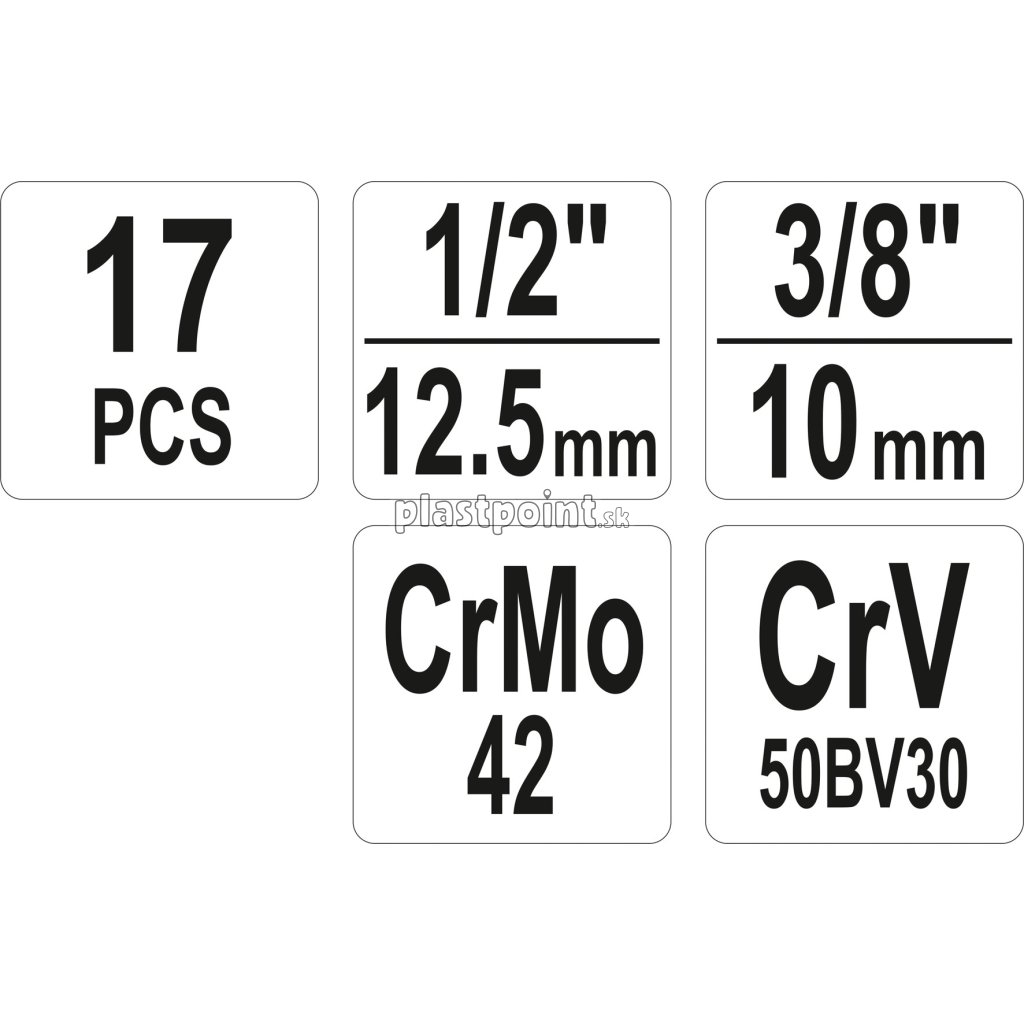 Celá sada je vyrobená z vysoko kvalitnej CrMo a CrV ocele.