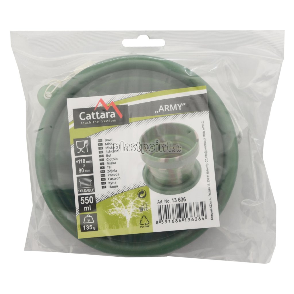 Praktická skladacia miska na jednoduché prenášanie, vhodná na outdoor využitie.
