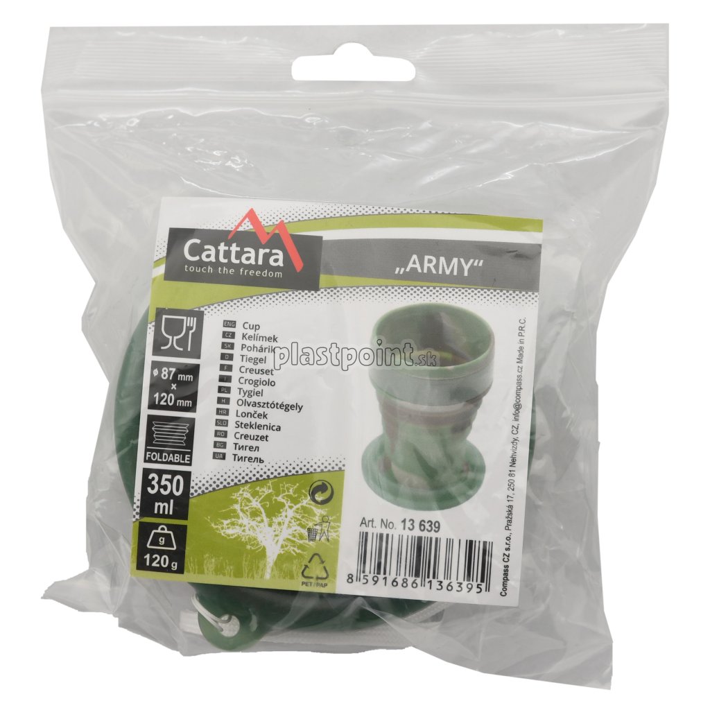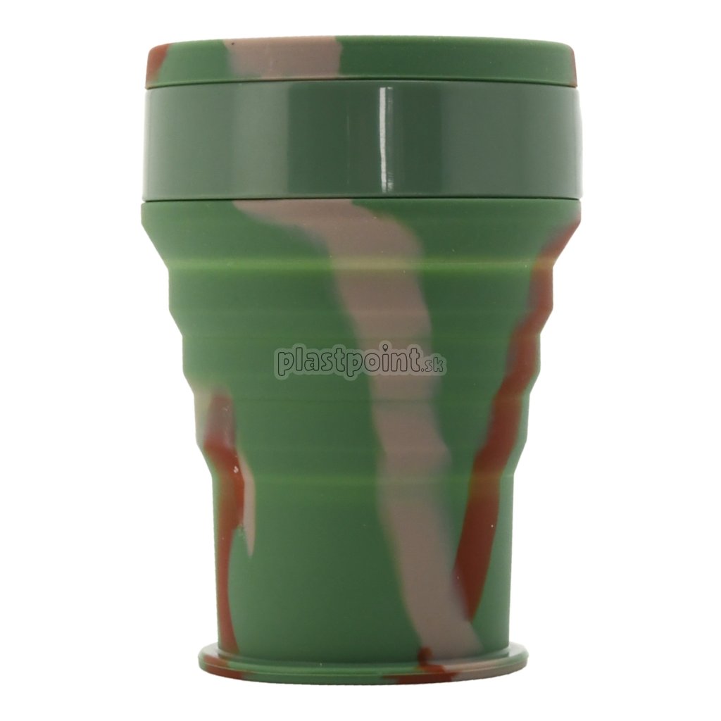 Praktický skladací kelímok na jednoduché prenášanie, vhodný na outdoor využitie.