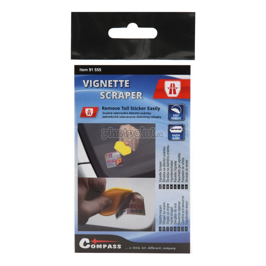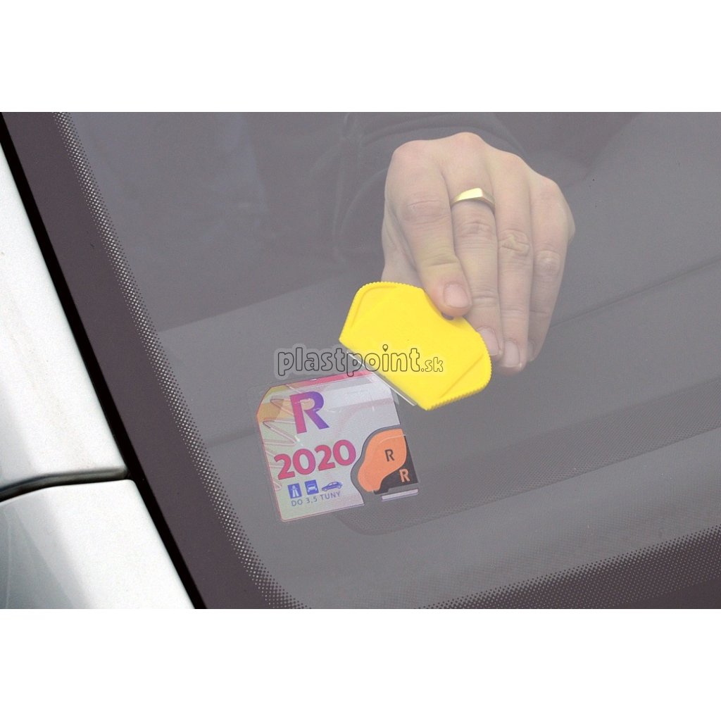 Škrabka na odstránenie diaľničnej známky - ľahko odstráni akýkoľvek druh nálepiek a známok zo skla.