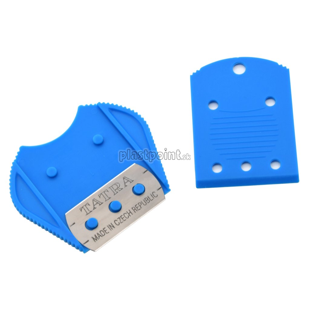 Škrabka je vo vnútri osadená klasickou žiletkou českej výroby, ktorá ľahko prenikne do vrstvy lepidla medzi sklo a nálepku. Žiletku je možné po použití zasunúť dovnútra, takže škrabku je možné ľahko uschovať bez rizika zranenia o ostrý brit.