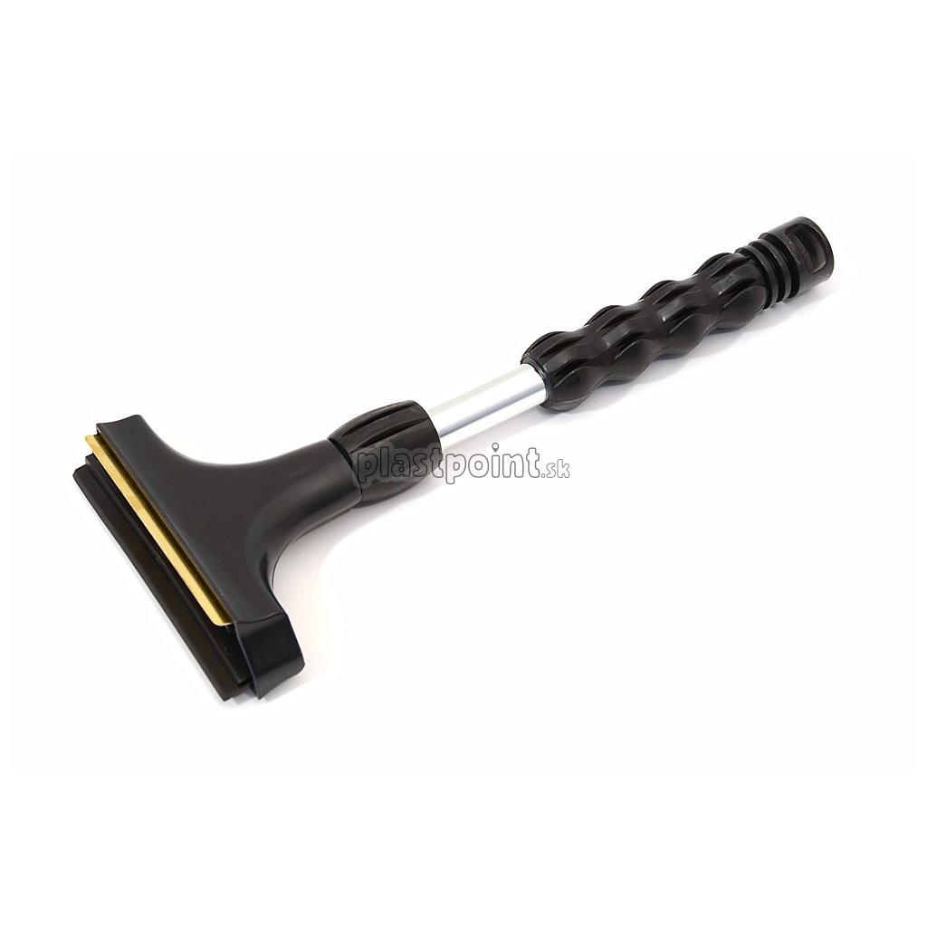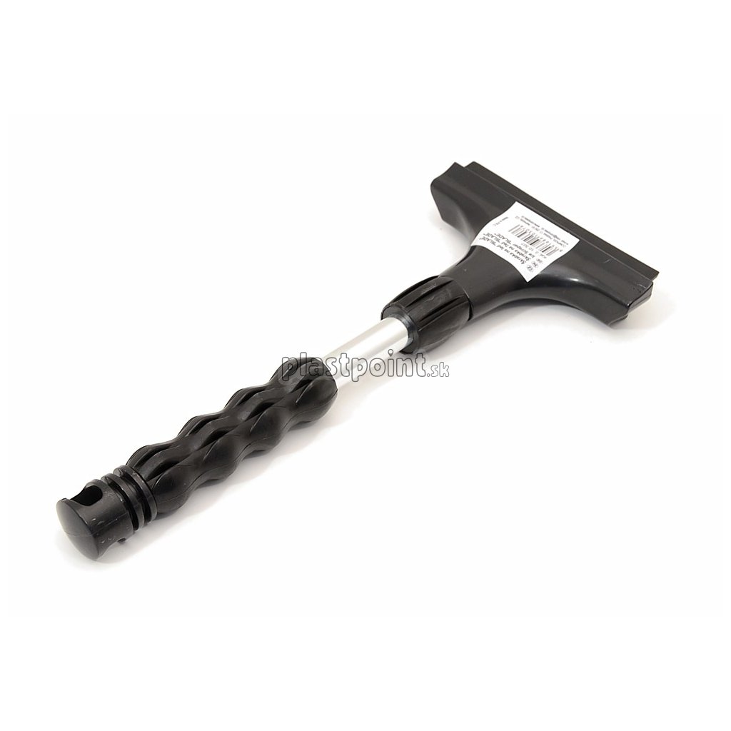 Škrabka s gumovým a kovovým britom, ergonomicky tvarovaná rukoväť s kovovou konštrukciou.