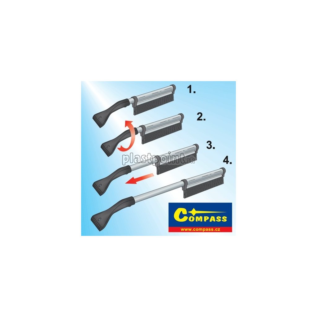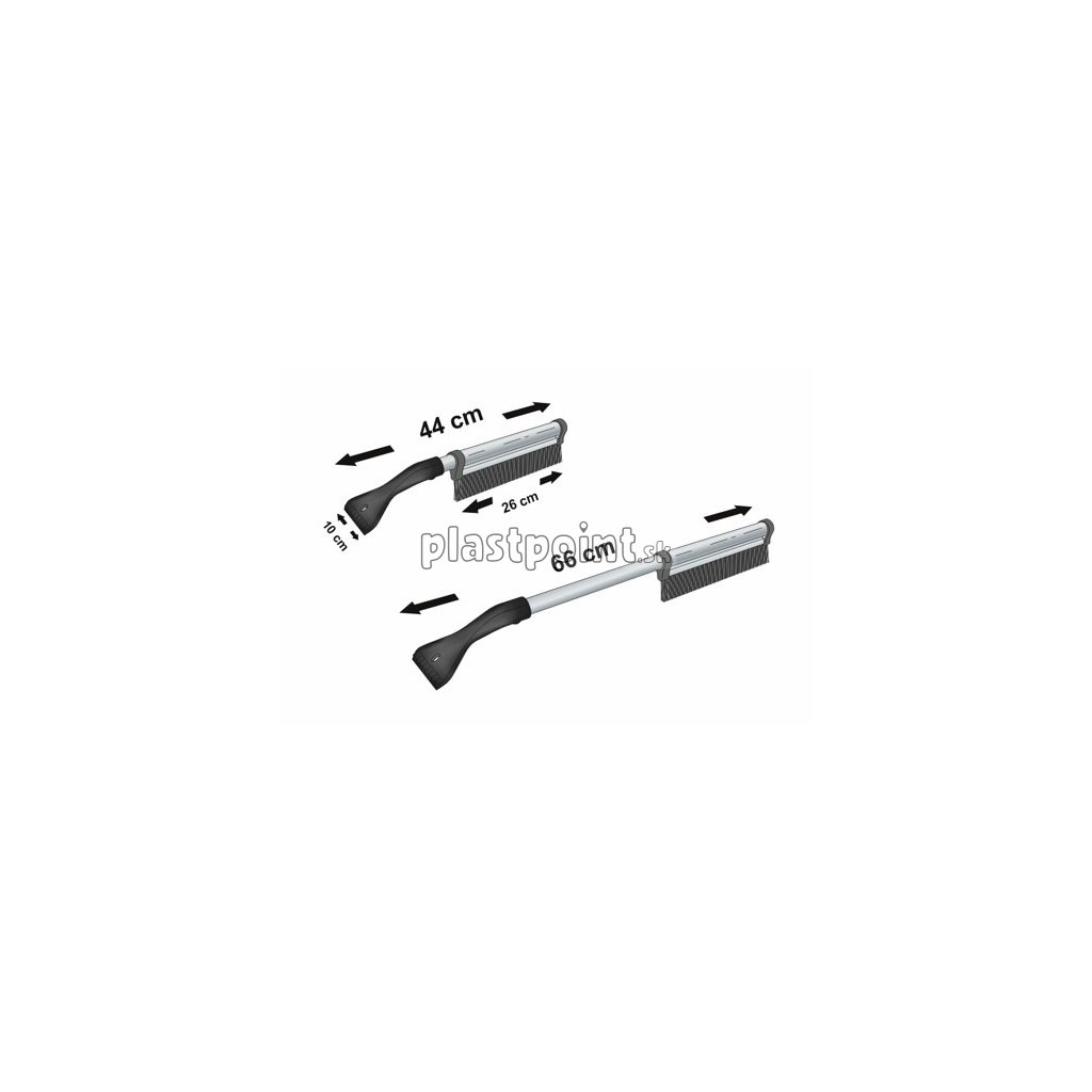 Teleskopické metličko so škrabkou, hliníková konštrukcia. Vďaka výsuvnej rukoväti vhodnej o pre väčšie vozidlá - ľahko je možné odstrániť sneh či námrazu z miest, kam s bežnou škrabkou nedosiahnete.