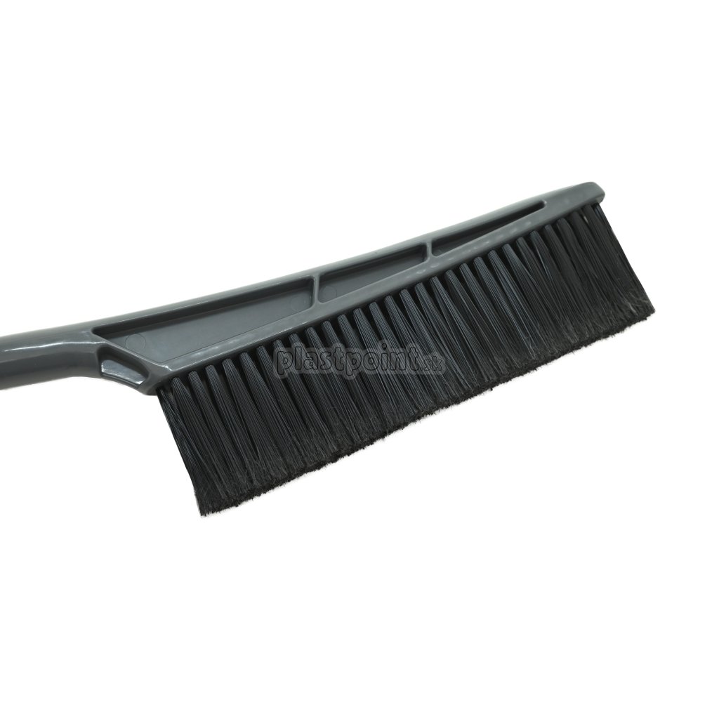 Škrabka s metličkou dĺžky 60 cm. Jeden koniec je opatrený metlou dĺžky 21 cm, druhý koniec je opatrený gumovou stierkou a šrkoabkou šírky 13,5 cm.