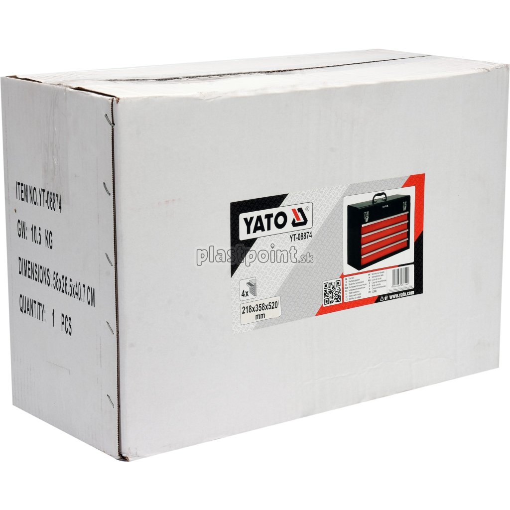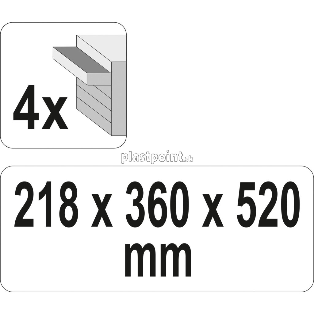 Skriňa má rozmery 520 x 360 x 218 mm, vrchná časť je opatrená madlom pre jednoduché prenášanie.