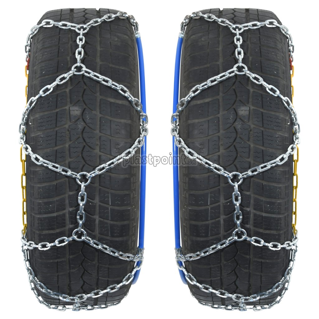 Sněhové řetězy se zesílenými oky, pro osobní vozidla do hmotnosti 2200 kg, splňující evropské normy včetně v Rakousku vyžadované "ÖNORM V 5117".