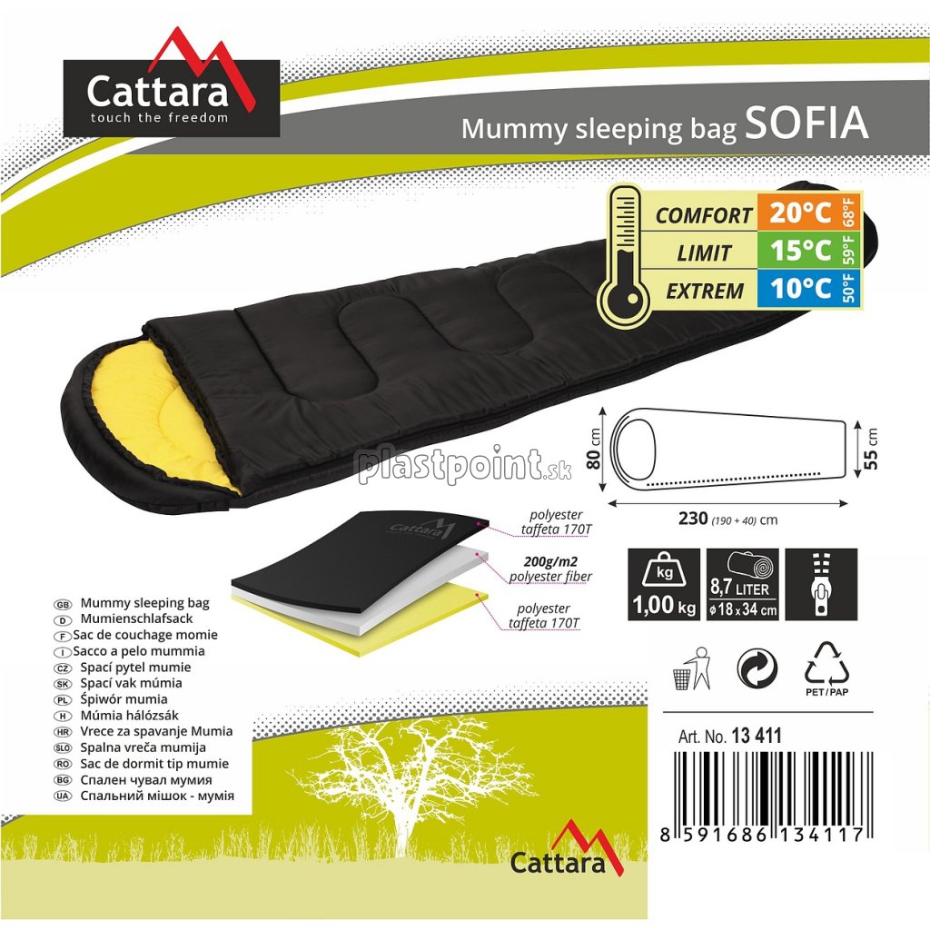 Spací vak múmie Sofia, je spacákom, ktorý dokonale kopíruje telo a má tak najlepšie tepelnoizolačné vlastnosti a je vybavený sťahovacou kapucňou chrániacou hlavu.
