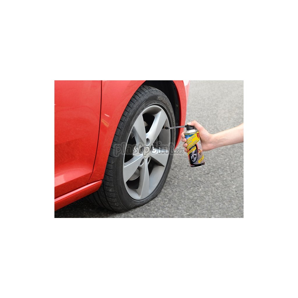 Návod na použitie: 1. Pokiaľ je to možné odstrániť predmet, ktorý spôsobil prepichnutie. 2. Nastavte koleso ventilom hore. 3. Dôkladne pretrepte sprej pred použitím. 4. Naskrutkujte hadičku spreja na ventilček. 5. Držte sprej vzpriamene a zatlačte na spúšťač spreja. 6. Pneumatika sa nafúkne a utesní za 1-3 minúty. 7. Uzavrite ventil kolesa a ihneď sa rozbehnite, aby sa prípravok v kolese rovnomerne rozprestrel (ujeďte minimálne 3-5 km). Takáto oprava len iba dočasná (pre núdzové dojatie k pneuservisu). Pneumatiku je potrebné následne odborne opraviť. V pneuservise informujte obsluhu o použití tohto prípravku.