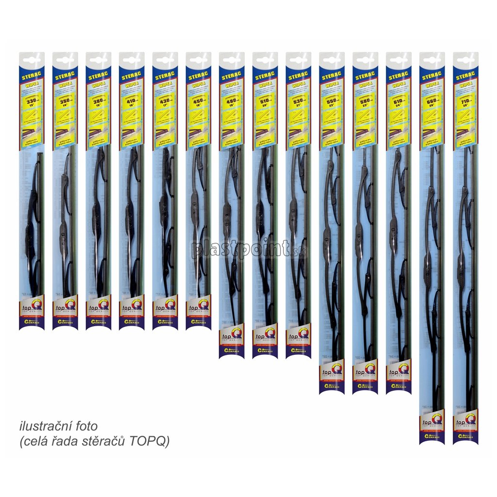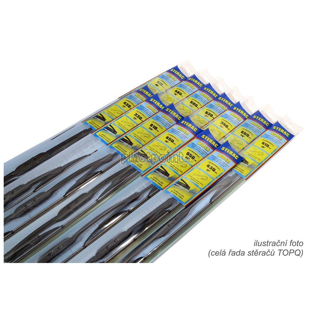Masívny kvalitný celokovový stierač TOP Q s grafitovým britom. Tento stierač je konštruovaný s vyváženým počtom vahadiel tak, aby zaistil dokonalý prítlak a spolu s grafitovým britom aj dokonalé stieranie s dlhou životnosťou.