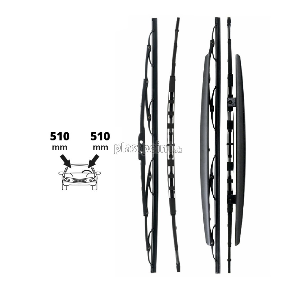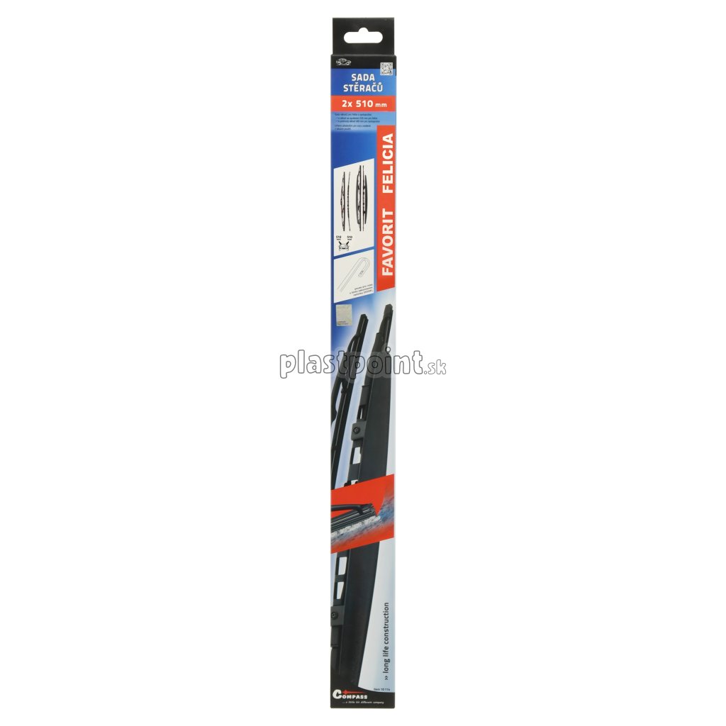 Sada dvoch stieračov (vodič + spolujazdec), optimalizovaná pre vozidlá Škoda Felicia. Stierač určený na montáž pred vodičom so spojlerom. Stierač určený na montáž pred spolujazdcom je prehnutý. Zaisťuje dokonalé stieranie aj na zakrivené časti skla na strane spolujazdca. Kvalitná viacvahadlová nitovaná konštrukcia ramena stierača. Balenie obsahuje stierač so spojlerom 510 mm (20") + stierač 510 mm (20") + univerzálne adaptéry pre montáž.