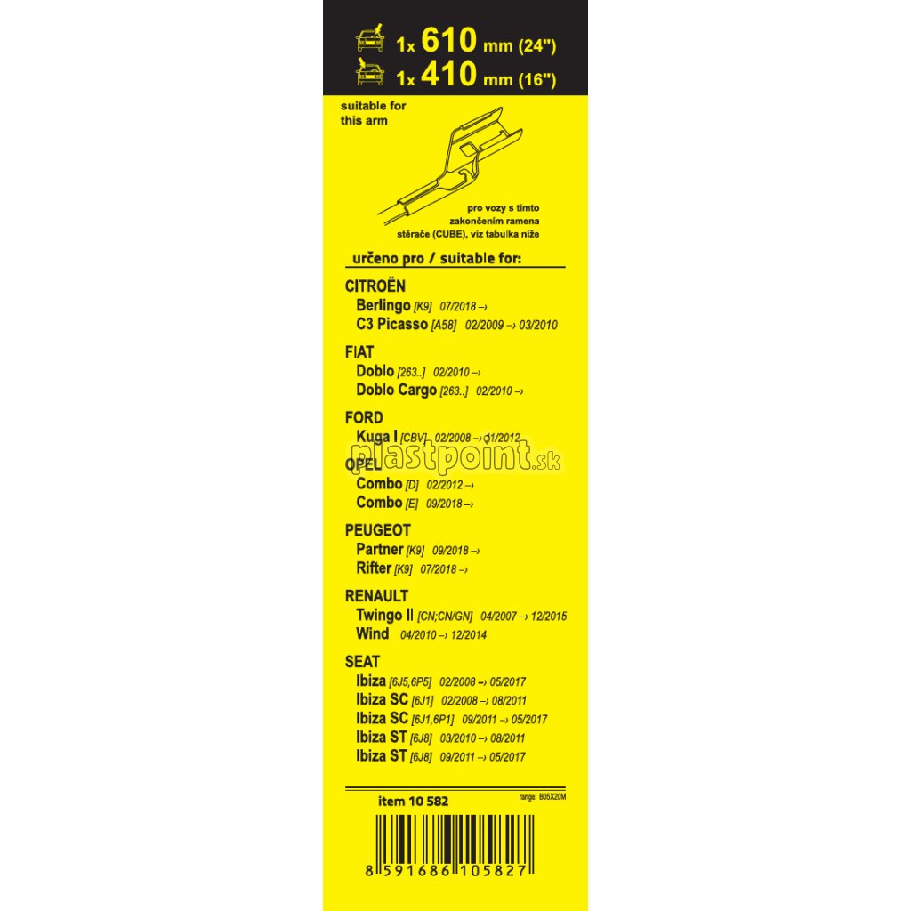 Sada dvoch plochých stieračov FLAT (vodič + spolujazdec) so špeciálnym uchytením. Dĺžky stieračov a systém uchytenia na ramienko sú prispôsobené vybraným vozidlám. vozidlá: