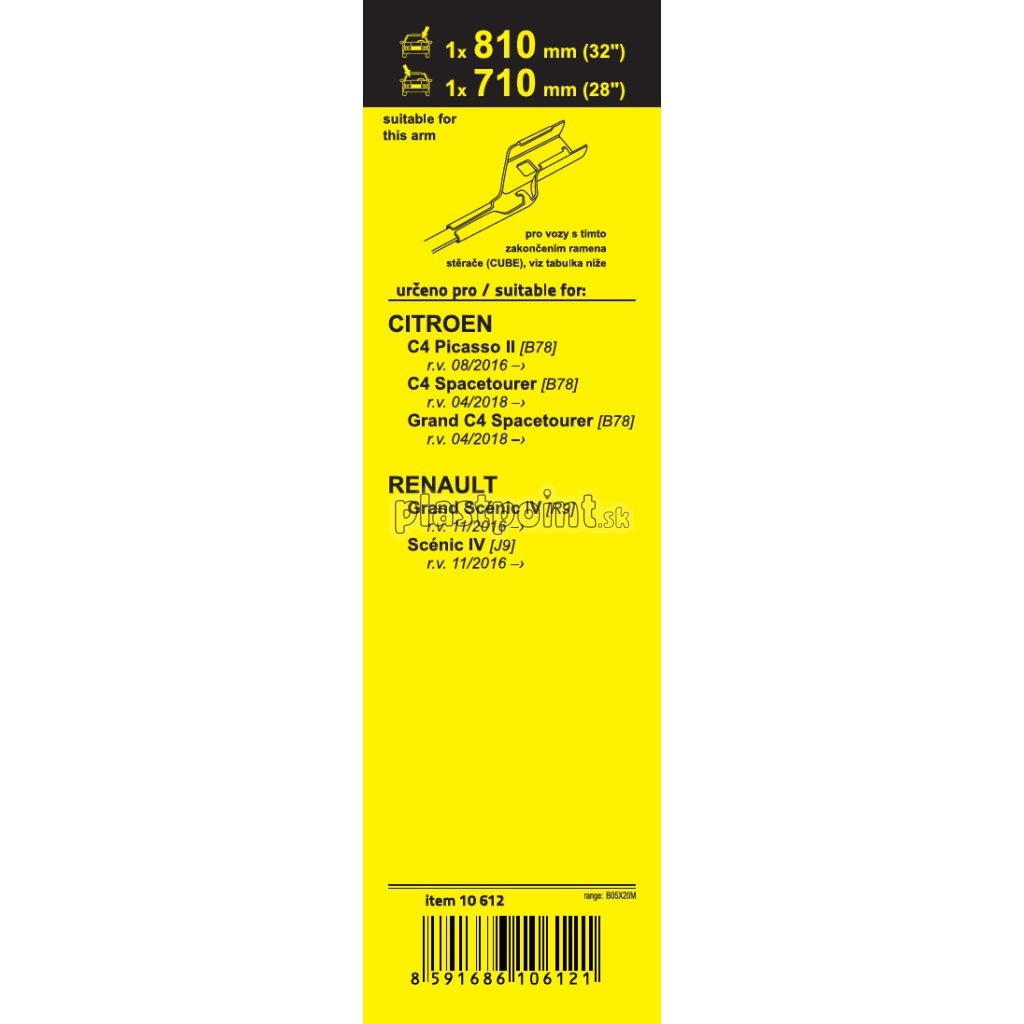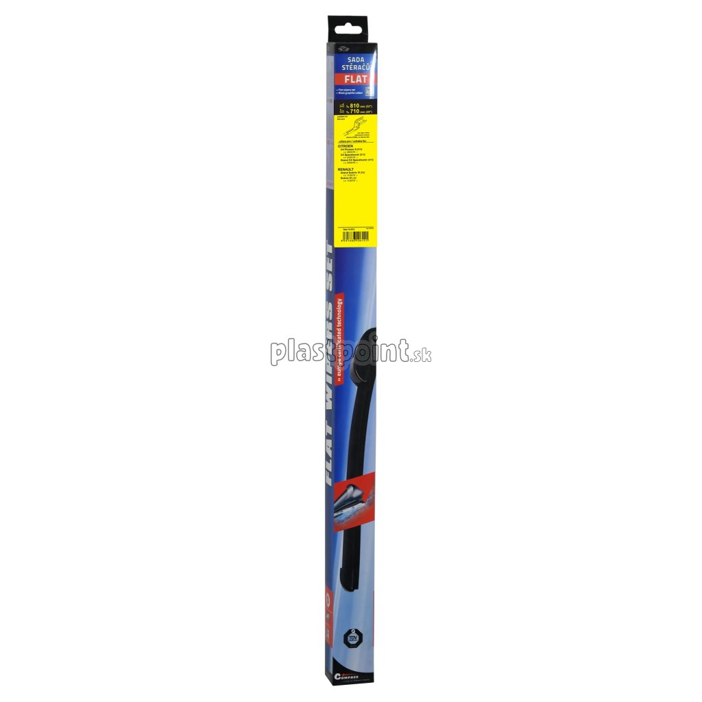 Sada dvoch plochých stieračov FLAT (vodič + spolujazdec) so špeciálnym uchytením. Dĺžky stieračov a systém uchytenia na ramienko sú prispôsobené vybraným vozidlám. vozidlá: