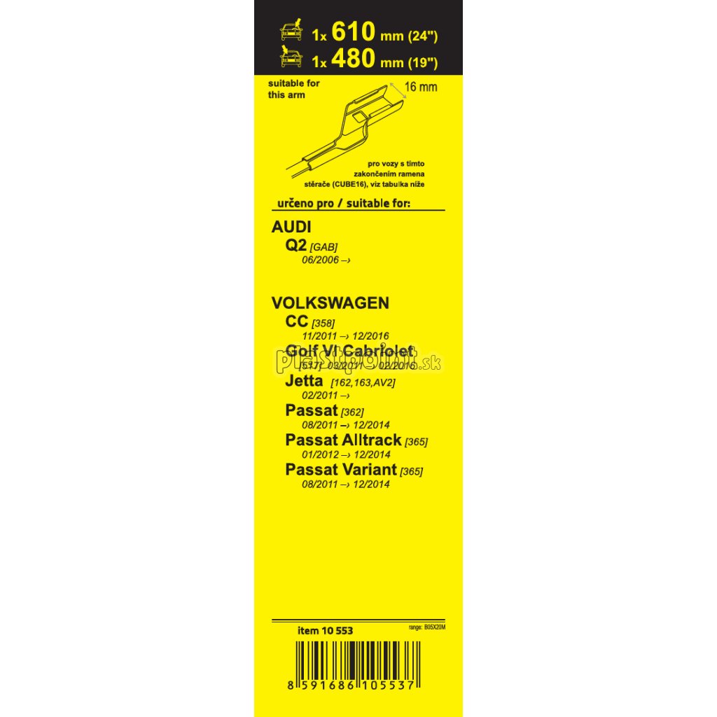 Sada dvoch plochých stieračov FLAT (vodič + spolujazdec) so špeciálnym uchytením. Dĺžky stieračov a systém uchytenia na ramienko sú prispôsobené vybraným vozidlám. vozidlá: