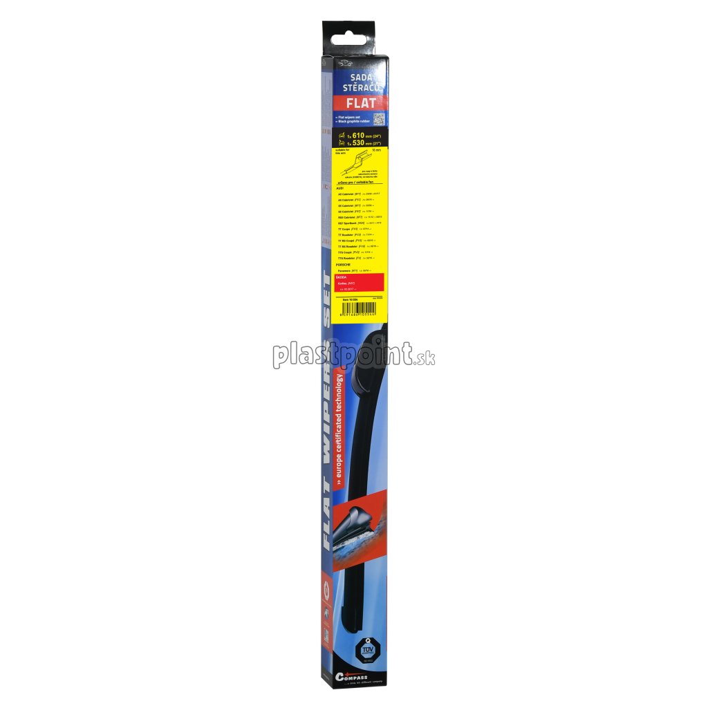 Sada dvoch plochých stieračov FLAT (vodič + spolujazdec) so špeciálnym uchytením. Dĺžky stieračov a systém uchytenia na ramienko sú prispôsobené vybraným vozidlám. vozidlá: