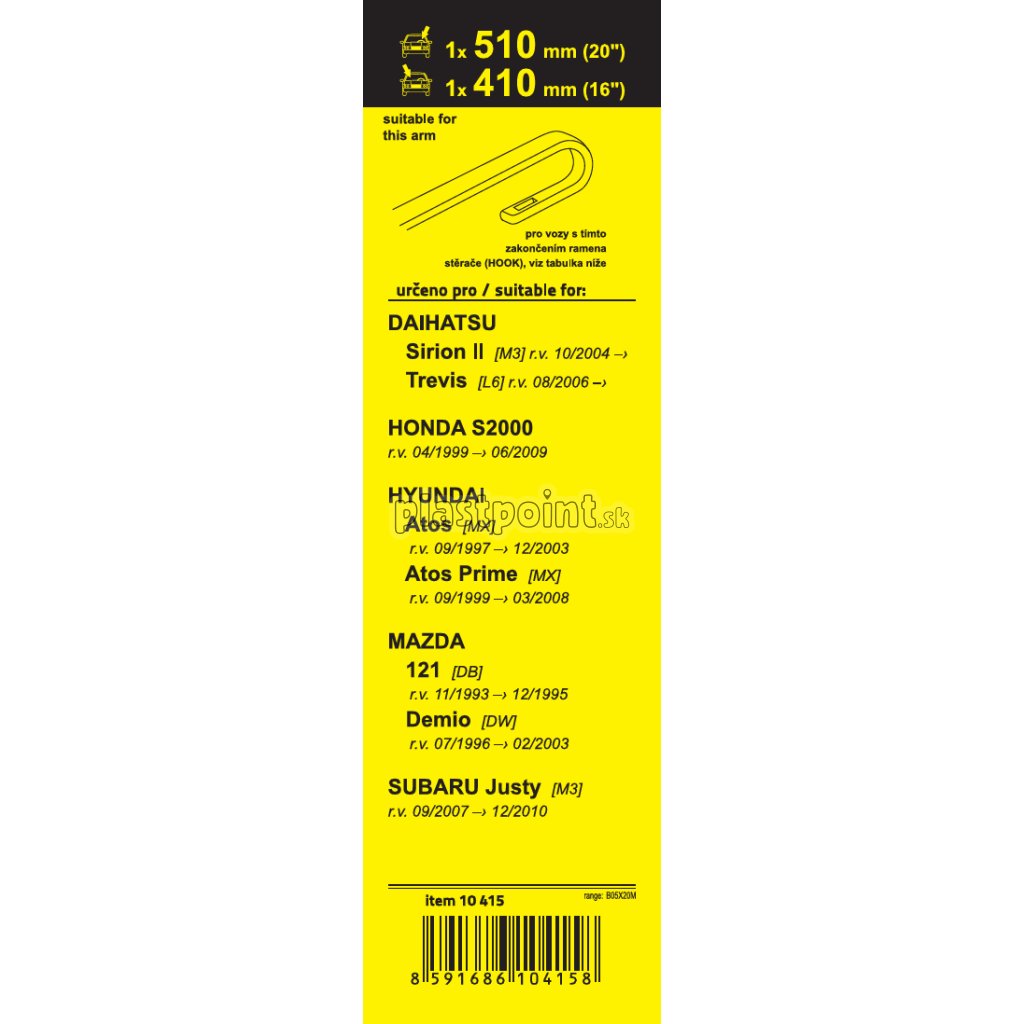 Sada dvoch plochých stieračov FLAT (vodič + spolujazdec) so špeciálnym uchytením. Dĺžky stieračov a systém uchytenia na ramienko sú prispôsobené vybraným vozidlám. vozidlá:
