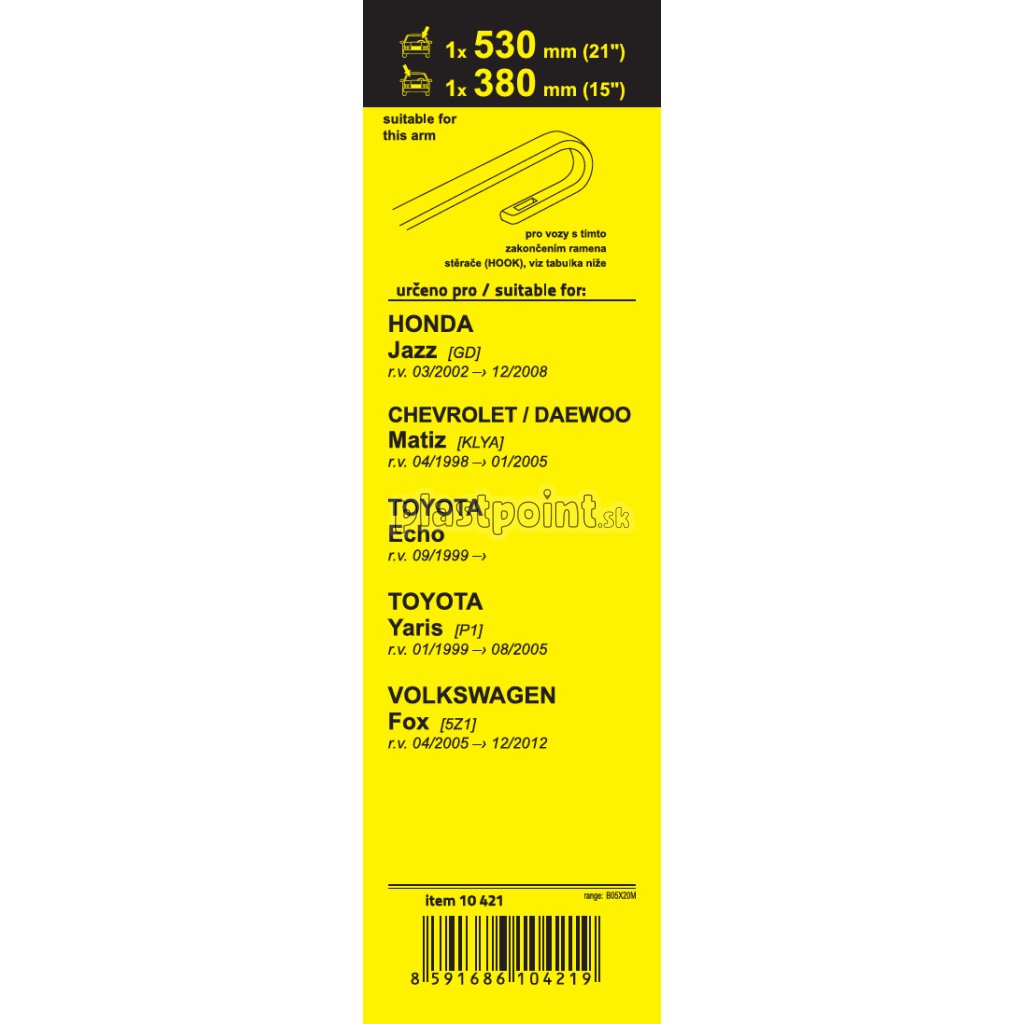 Sada dvoch plochých stieračov FLAT (vodič + spolujazdec) so špeciálnym uchytením. Dĺžky stieračov a systém uchytenia na ramienko sú prispôsobené vybraným vozidlám. vozidlá: