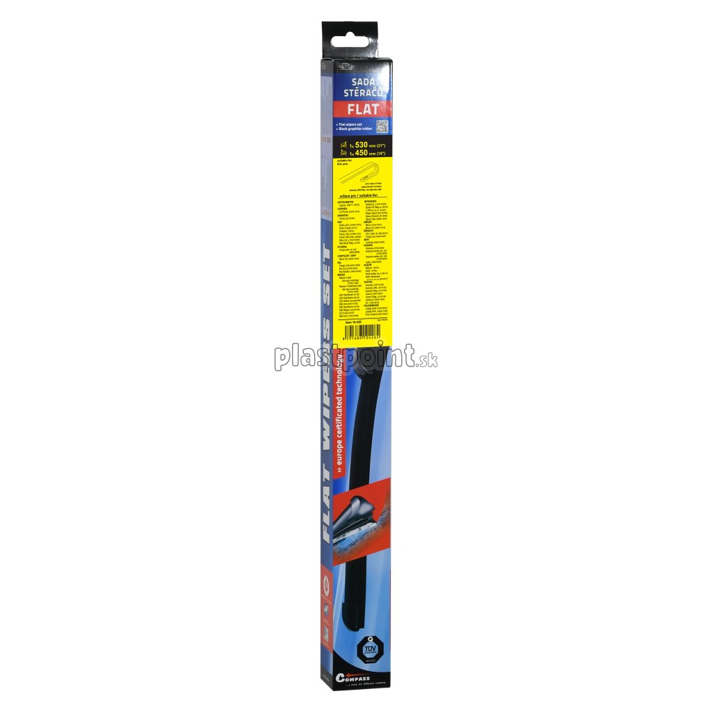 Sada dvoch plochých stieračov FLAT (vodič + spolujazdec) so špeciálnym uchytením. Dĺžky stieračov a systém uchytenia na ramienko sú prispôsobené vybraným vozidlám. vozidlá: