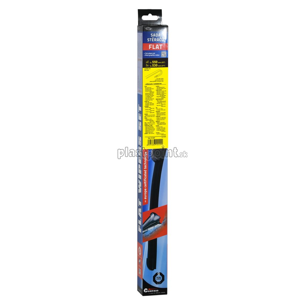 Sada dvoch plochých stieračov FLAT (vodič + spolujazdec) so špeciálnym uchytením. Dĺžky stieračov a systém uchytenia na ramienko sú prispôsobené vybraným vozidlám. vozidlá: