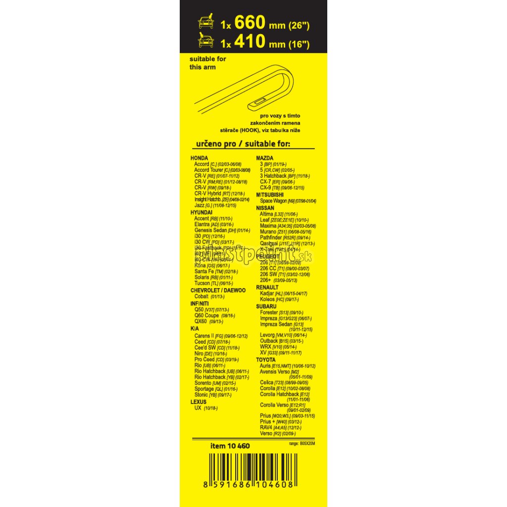 Sada dvoch plochých stieračov FLAT (vodič + spolujazdec) so špeciálnym uchytením. Dĺžky stieračov a systém uchytenia na ramienko sú prispôsobené vybraným vozidlám. vozidlá: