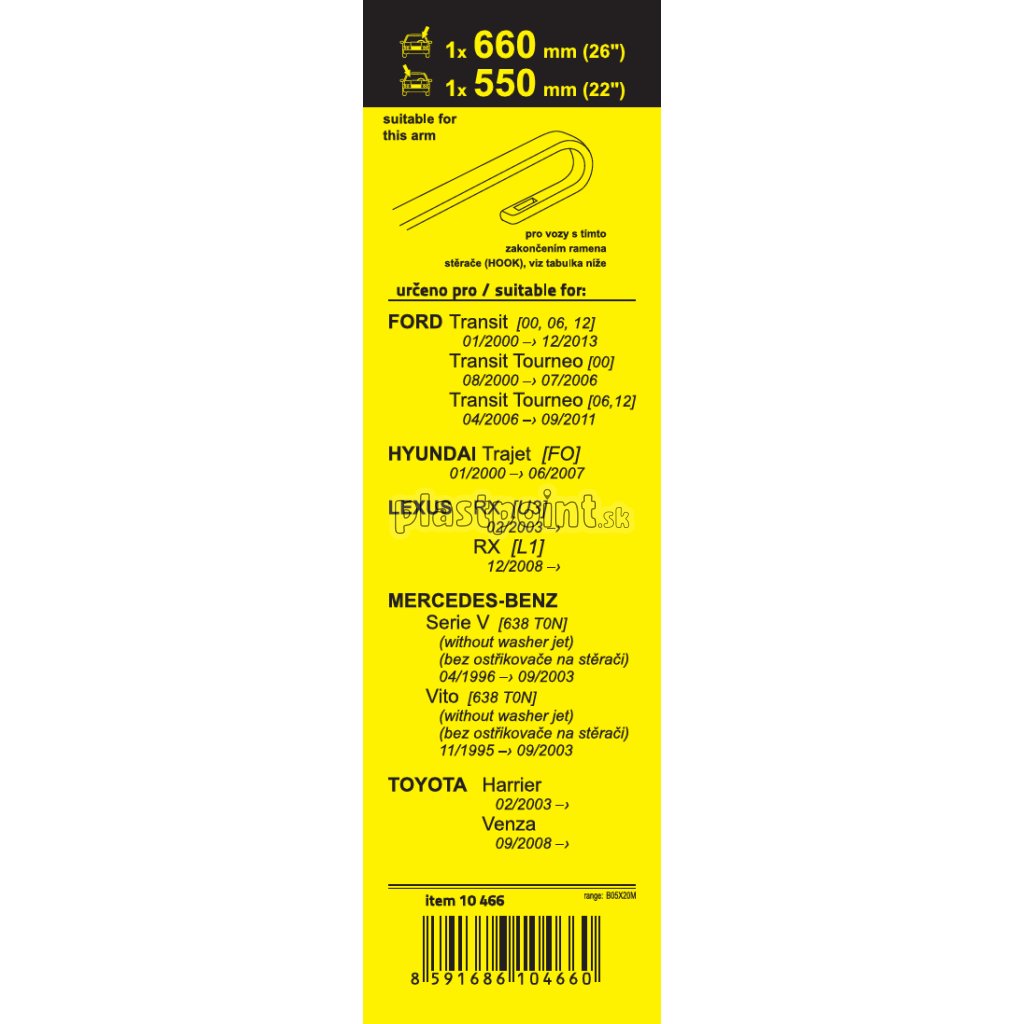 Sada dvoch plochých stieračov FLAT (vodič + spolujazdec) so špeciálnym uchytením. Dĺžky stieračov a systém uchytenia na ramienko sú prispôsobené vybraným vozidlám. vozidlá: