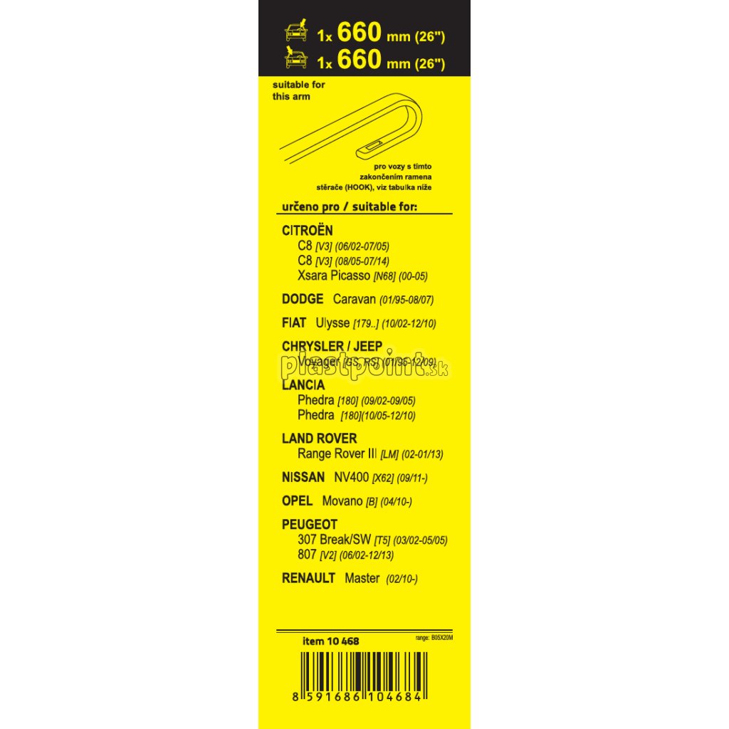 Sada dvoch plochých stieračov FLAT (vodič + spolujazdec) so špeciálnym uchytením. Dĺžky stieračov a systém uchytenia na ramienko sú prispôsobené vybraným vozidlám. vozidlá: