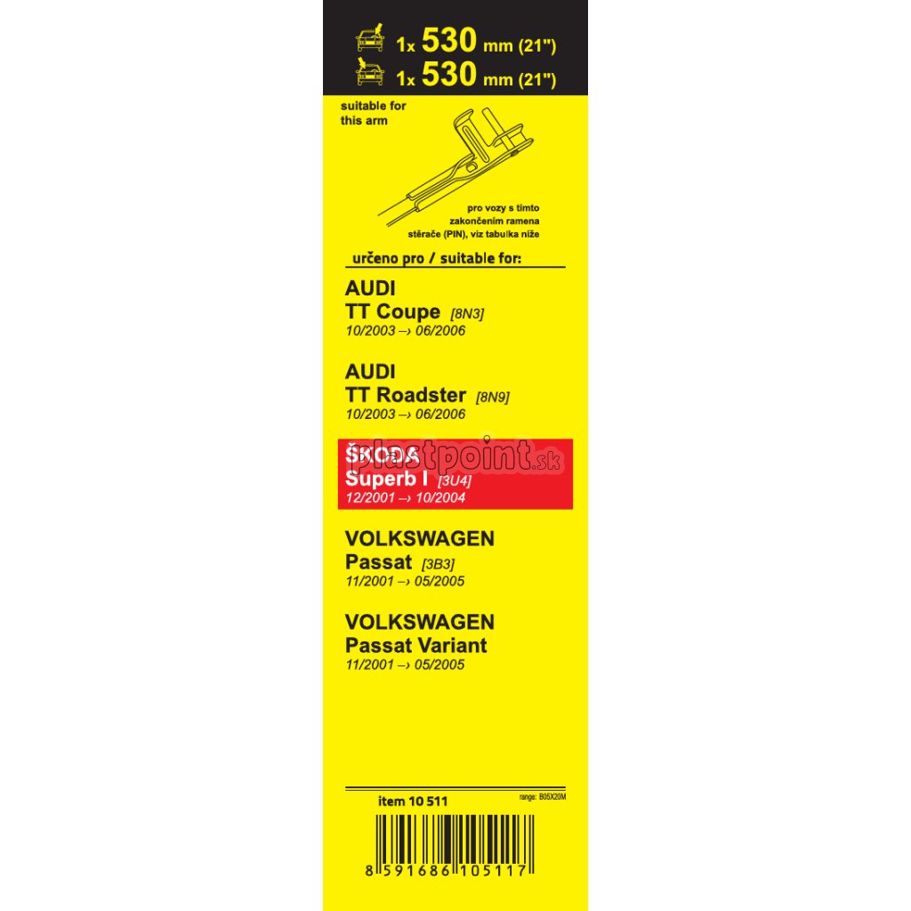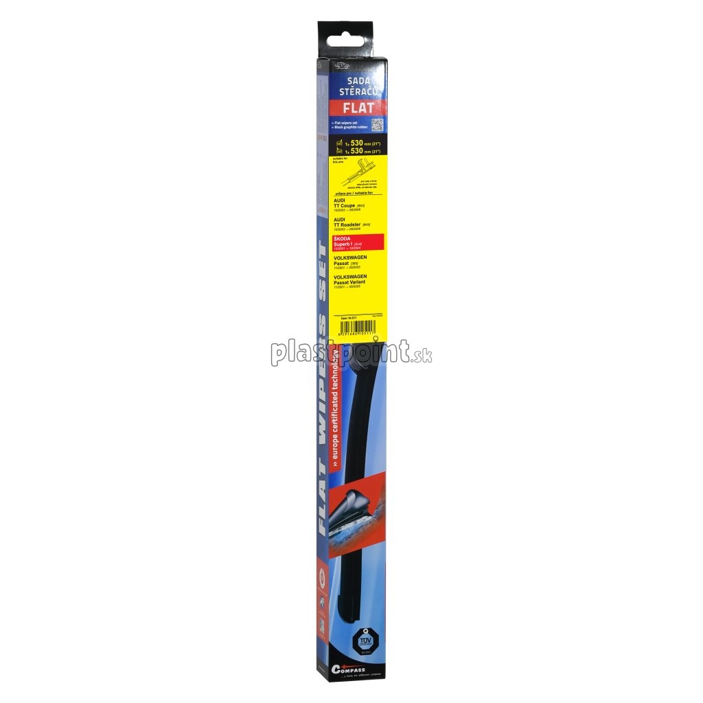 Sada dvoch plochých stieračov FLAT (vodič + spolujazdec) so špeciálnym uchytením. Dĺžky stieračov a systém uchytenia na ramienko sú prispôsobené vybraným vozidlám. vozidlá: