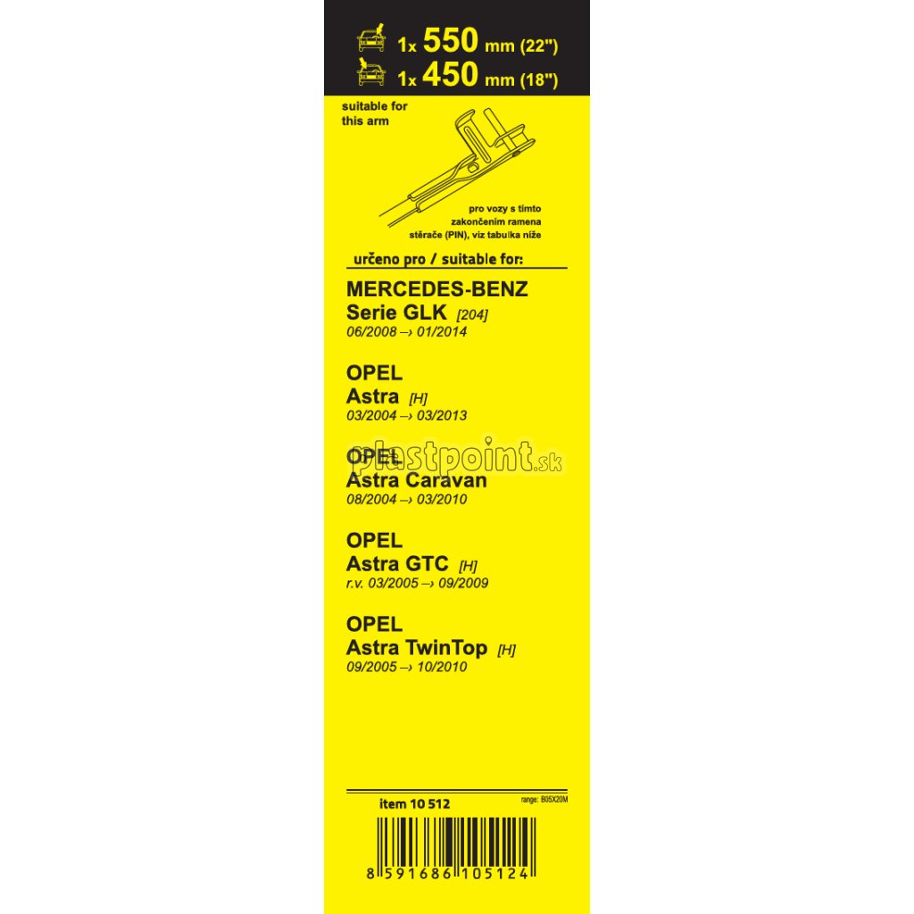 Sada dvoch plochých stieračov FLAT (vodič + spolujazdec) so špeciálnym uchytením. Dĺžky stieračov a systém uchytenia na ramienko sú prispôsobené vybraným vozidlám. vozidlá: