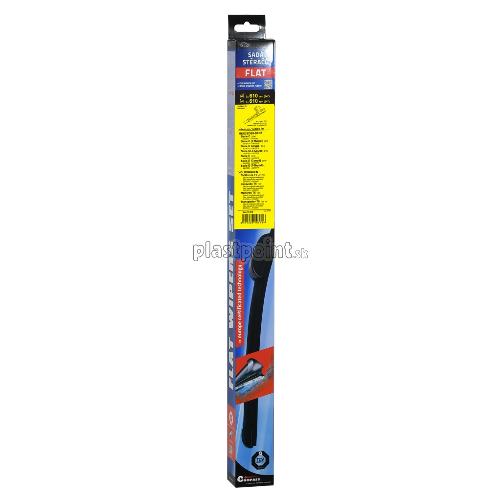 Sada dvoch plochých stieračov FLAT (vodič + spolujazdec) so špeciálnym uchytením. Dĺžky stieračov a systém uchytenia na ramienko sú prispôsobené vybraným vozidlám. vozidlá:
