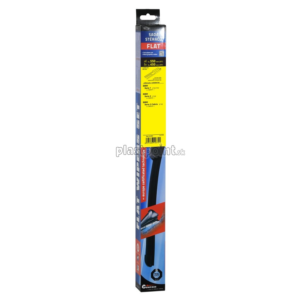 Sada dvoch plochých stieračov FLAT (vodič + spolujazdec) so špeciálnym uchytením. Dĺžky stieračov a systém uchytenia na ramienko sú prispôsobené vybraným vozidlám. vozidlá:
