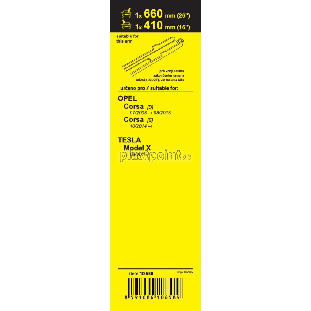 Sada dvoch plochých stieračov FLAT (vodič + spolujazdec) so špeciálnym uchytením. Dĺžky stieračov a systém uchytenia na ramienko sú prispôsobené vybraným vozidlám. vozidlá:
