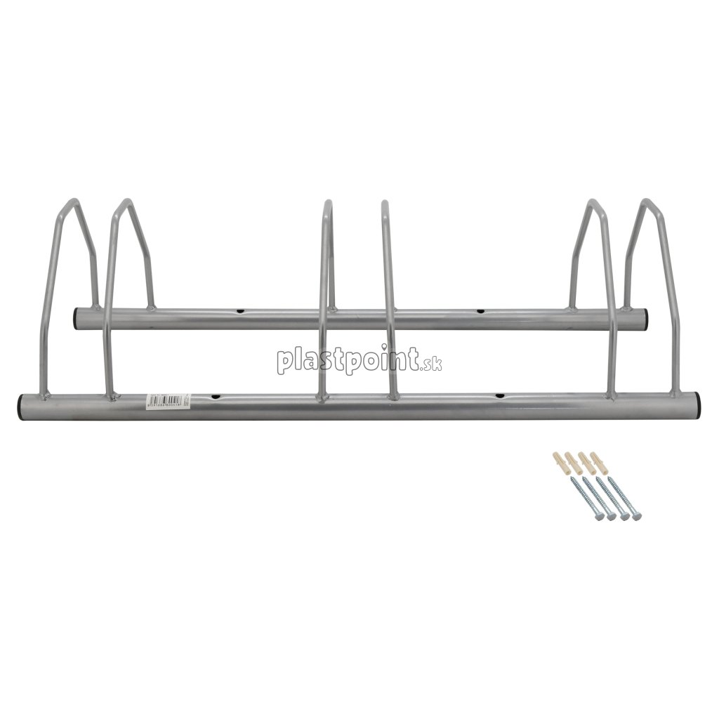 Praktický stojan na 3 bicykle, vhodný na pripevnenie do zeme pomocou skrutiek s hmoždinkami (sú súčasťou).