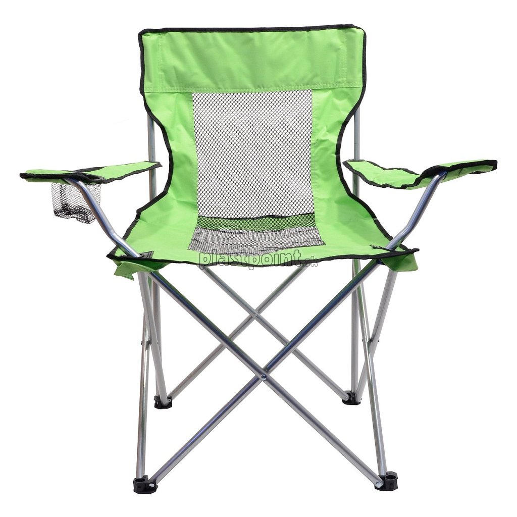 štyrmi opornými nohami, ktoré je možné uchytiť k zemi za použitia stanových kolíkov a tým významne zvýšiť stabilitu. Stolička ponúka pohodlné a stabilné posedenie. Po rozložení má stolička celkovou výškou 87 cm a rozmery sedadla 52 x 43 cm, vo výške 40 cm od zeme. Stolička je opatrená sieťovinou na vetranie v zadnej a sedacej časti. Ďalej je vybavená dvoma opierkami slúžiacimi ako opora rúk, kde v jednej je navyše zabudovaný držiak na pitie. Maximálna možná nosnosť je 90 kg.| Technické údaje | |