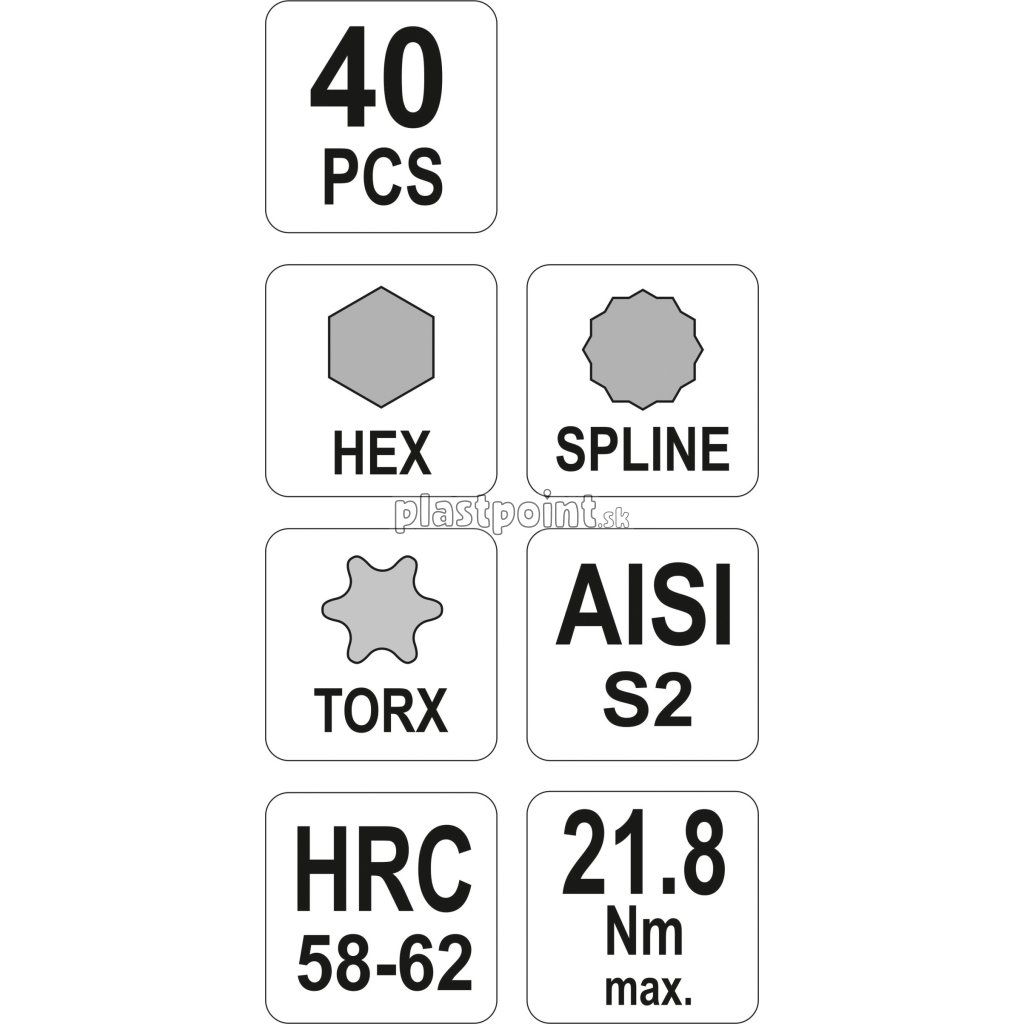 Rozmanitosť bitov poskytuje možnosť vykonávať mnoho prác v odborných službách, predovšetkým v automobilovom priemysle. V sade sa nachádza 40 ks.