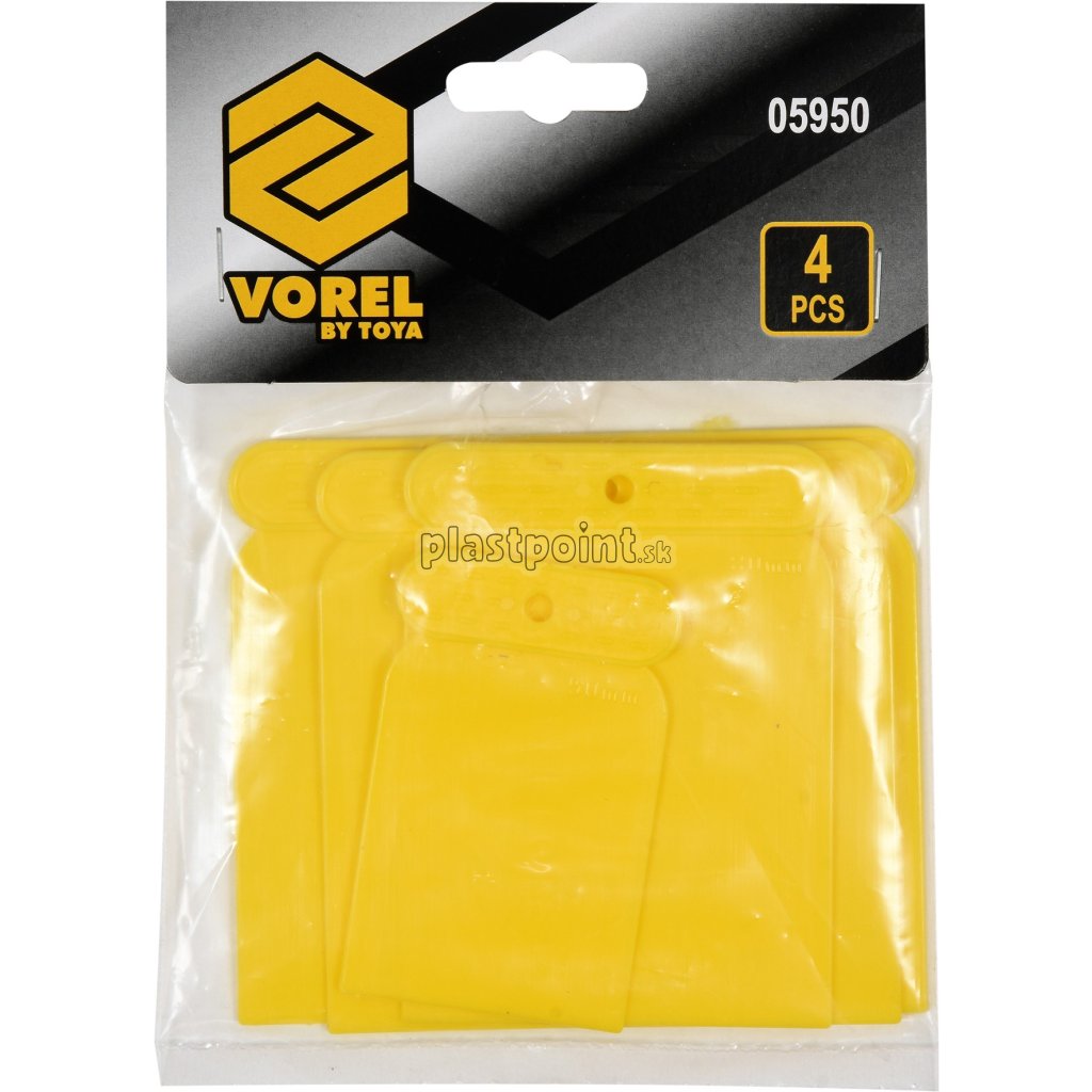 Sada sa skladá zo 4 ks odolných a ohybných špachtlí so šírkou 5; 7,5; 10 a 12 cm.