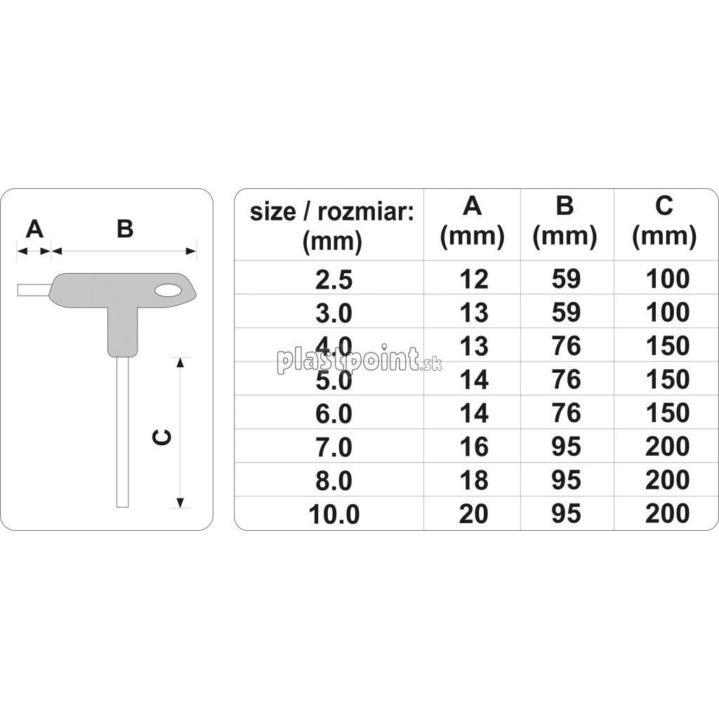 | Veľkosti kľúčov | 2,5; 3; 4; 5; 6; 7; 8; 10 mm |