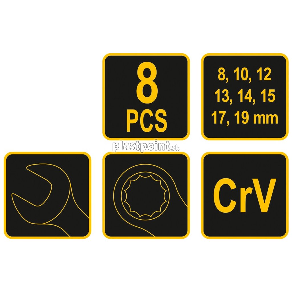 Súprava kľúčov očkoplochých 8 ks 8 - 19 mm CrV