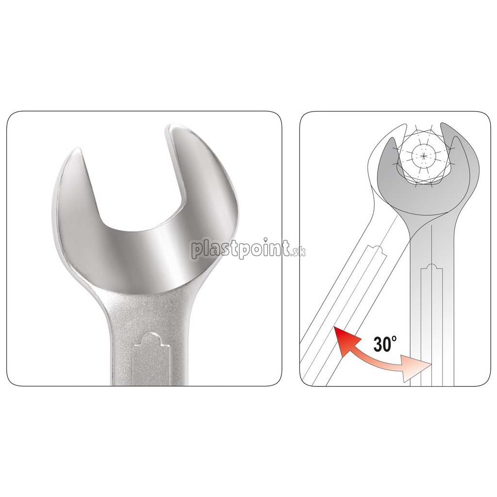 Sada 10 kusov stranových kľúčov 6 - 27 mm vyrobených z kvalitnej chróm vanádiovej zliatiny ocele, uložených v odolnom puzdre zo silnej syntetickej tkaniny, umožňujúce zavesenie.