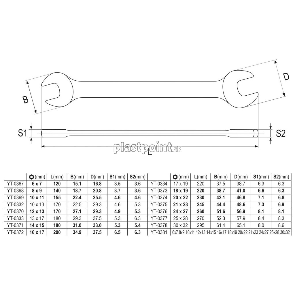 • Kľúče stranové sada 10 kusov 6-27 mm CrV Yato 10x11, 12x13, 14x15, 16x17, 18x19, 20x22, 21x23, 24x27 mm