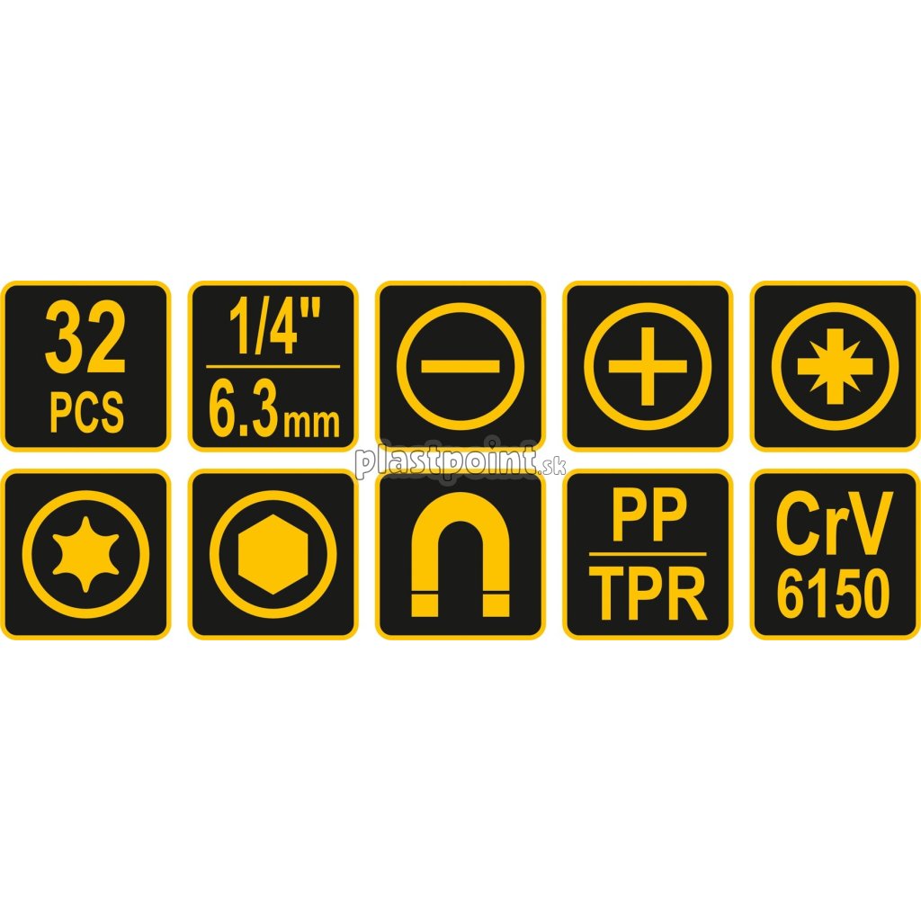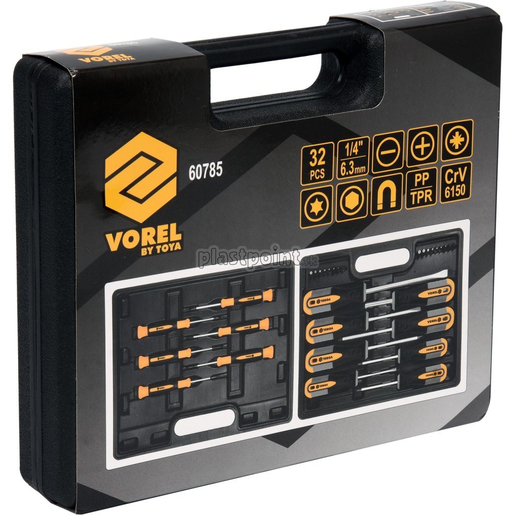 Sada 18ks skrutkovačov vyrobených z CrV6150 ocele s ergonomicky tvarovanými rukoväťami z protišmykového PP a TPR.