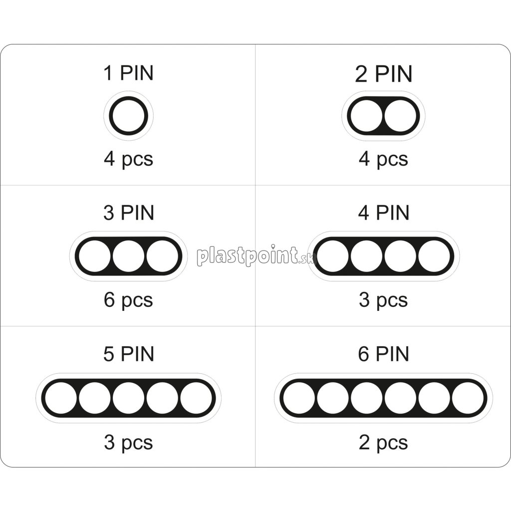 Sada hermetických spojok v 6 veľkostiach zodpovedajúca najbežnejším priemerom elektrických káblov. Používa sa v automobilovom priemysle, vr. pre senzory a zariadenia v automobiloch.