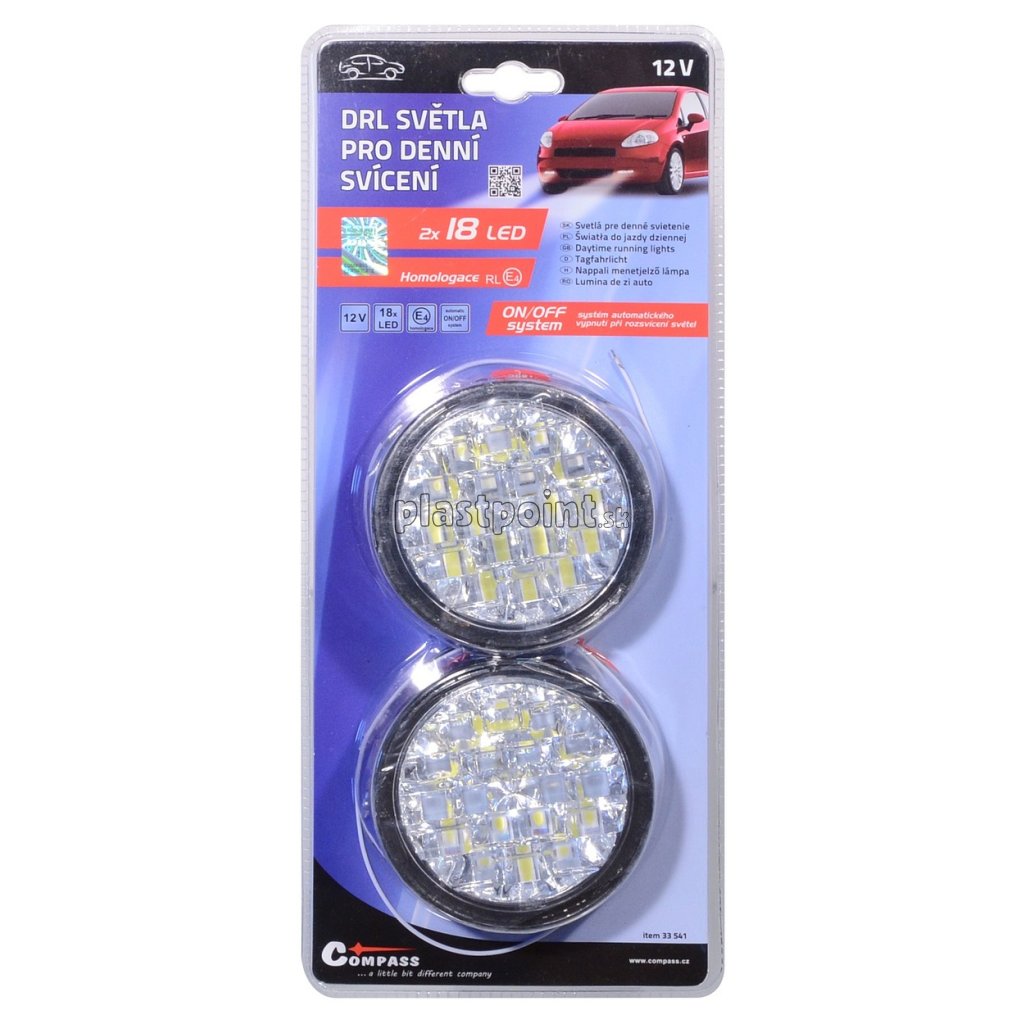 Homologované svetlá pre denné svietenie, napájanie 12 V. Každé svetlo je osadené 18x LED.