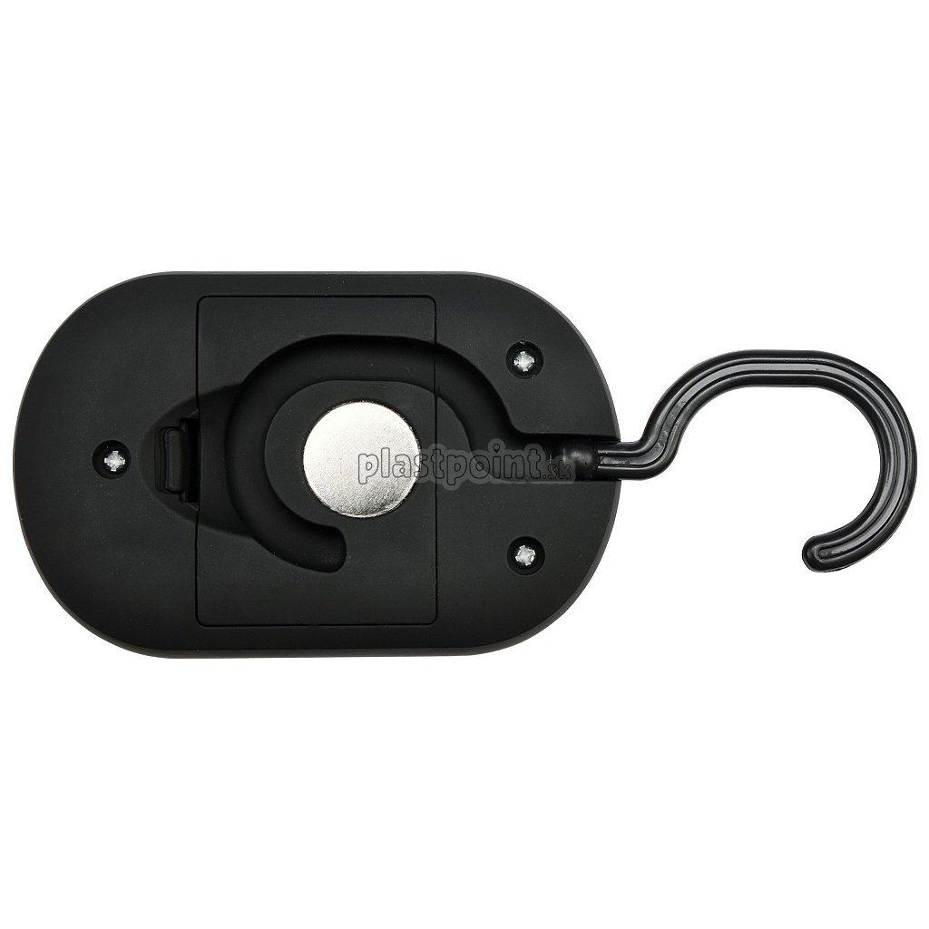 Napájanie 3x AAA batérie (LR03, nie sú súčasťou balenia). Svietidlo je možné jednoducho upevniť vstavaným magnetom na zadnej strane, alebo zavesiť na zabudovaný výklopný háčik.