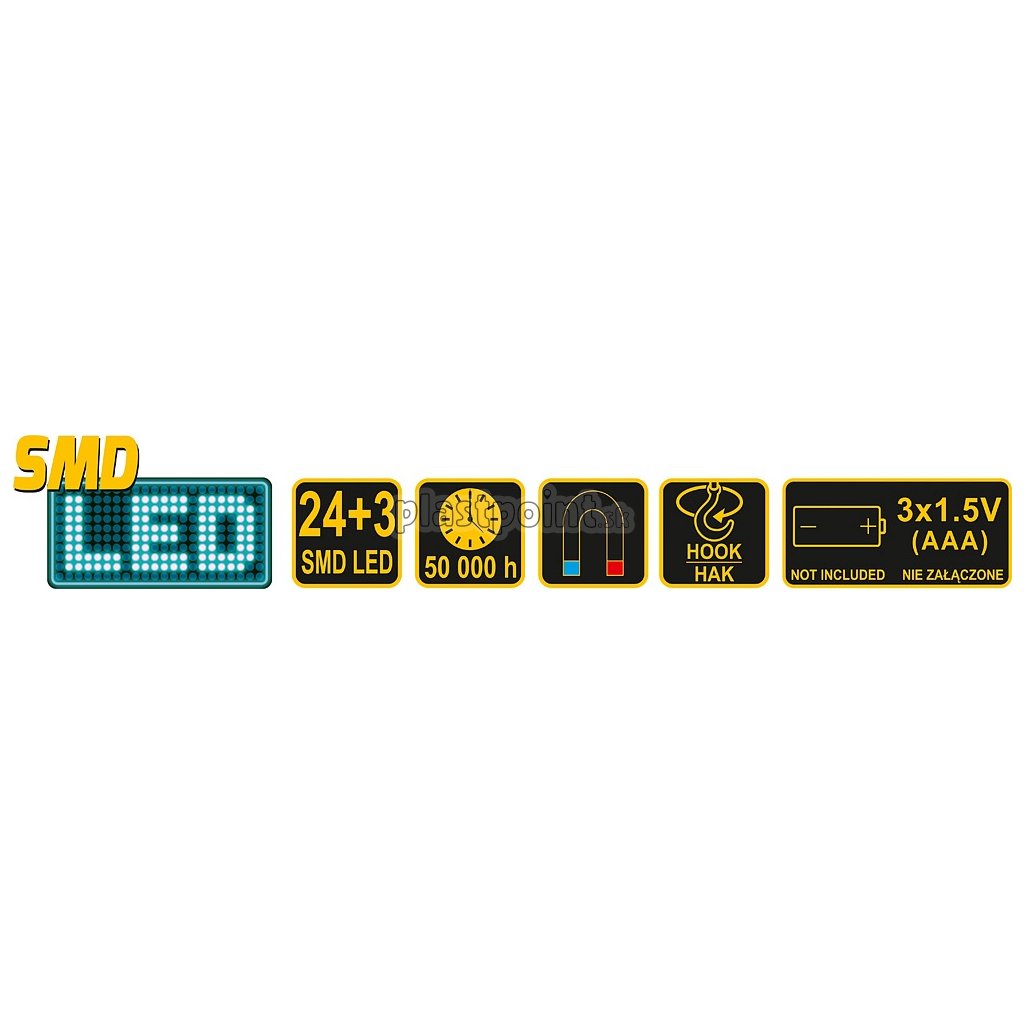 Prenosné svietidlo osadené vysoko svietivými SMD LED diódami s nízkou spotrebou.