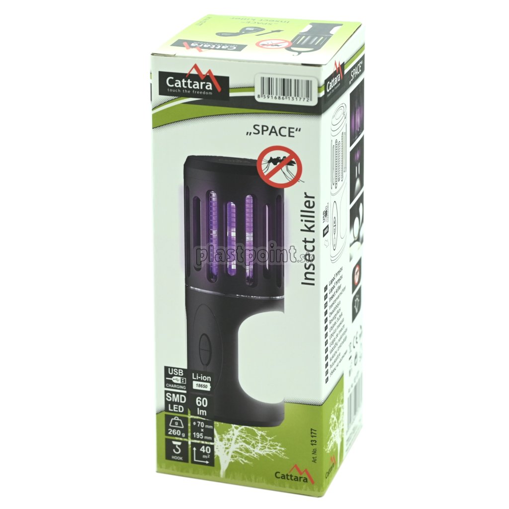 Lampička s elektronickým lapačom hmyzu, ktorý využíva svetlo s ultra fialovými lúčmi pre efektívne nalákanie lietavého hmyzu (napr. muchy, mory, mole, komáre a ďalšie). Hmyz je po kontakte s kovovou sieťou pod vysokým napätím zahubený elektrickým prúdom. Prístroj na ničenie nevyužíva žiadne chemické látky, pracuje bez zápachu a bez znečistenia.